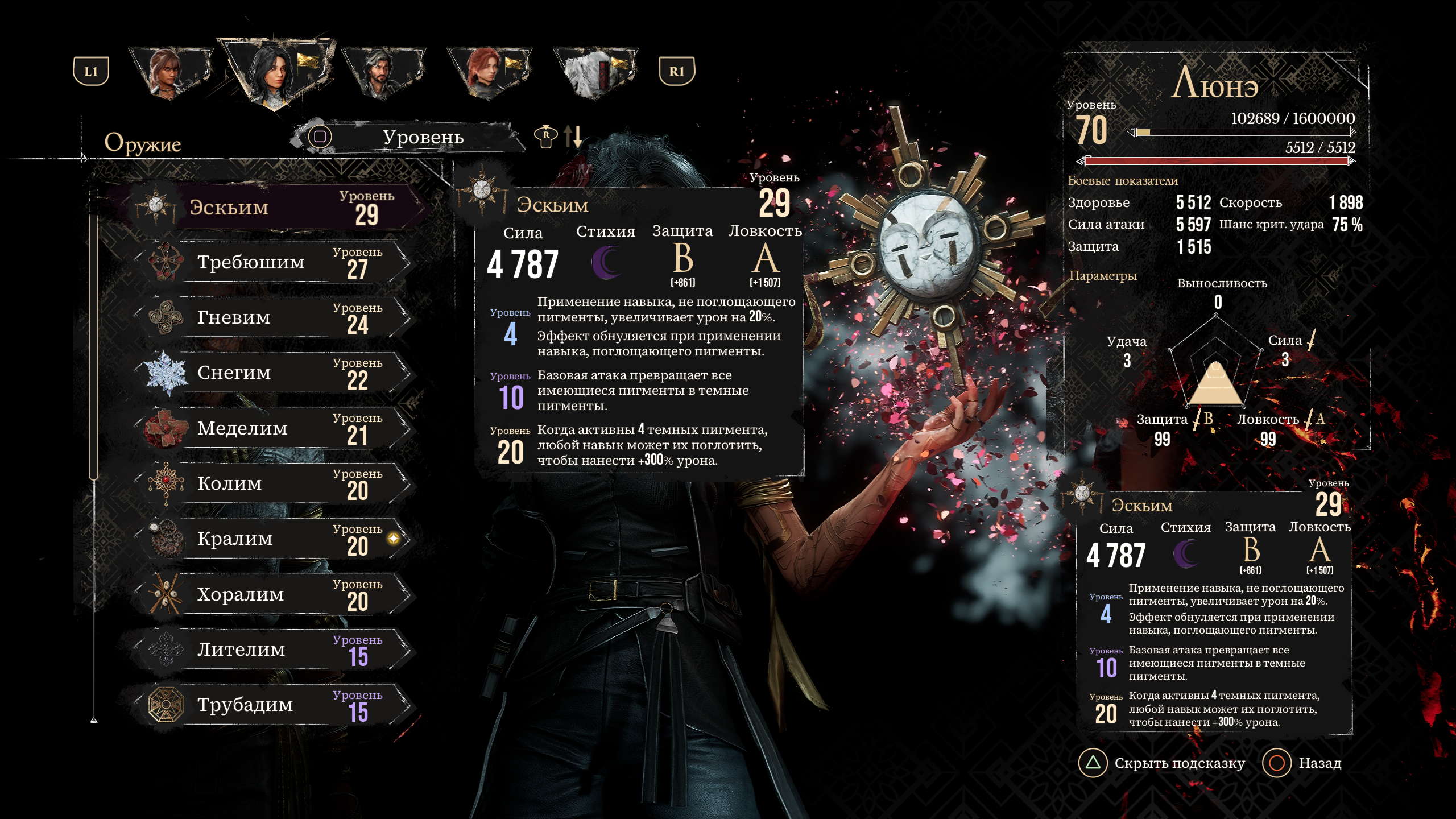Ебать тут с билдами можно повозиться, всегда магичкой играл через генезис, а тут такой пиктос нашел чат гпт сказал, что 75% крита профитней всего, лол + пушку, которая все элементы превращает в темные с +300% дамага, перекачался в 99 ловкости и хуярю полтора миллиона дамага с одного удара Ада. Попозже еще на остальных героев придумаю что-нибудь, а то и так мозговую активность потратил на магичку.