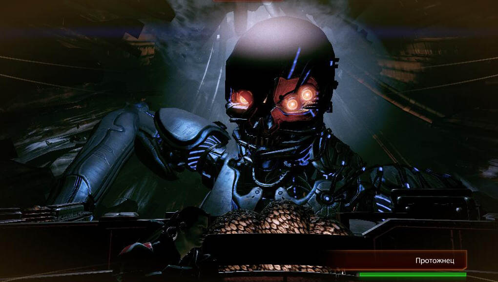 Это какой-то новый троллинг тупостью или что? Сделали реально ахуенную идею - зародыш челожнеца, окей, называй терминатором, с каким пор терминатор это плохо? Босс концептуально и визуально пиздатый. Единственная его проблема, что он слишком лёгкий. Дефолтные потасовки с кроганами в ме2 были сложнее этого босса. Я прям хорошо помню своё первое впечатление ахуя и последующее разочарование "И это всё? А разговроров-то было...". По хорошему надо было делать, чтобы это был босс на время - если не успеваешь его убить до определённого момента, то он просто сбивает все платформы вместе с тобой, а так от него тупо угрозы не чувствуешь вообще.