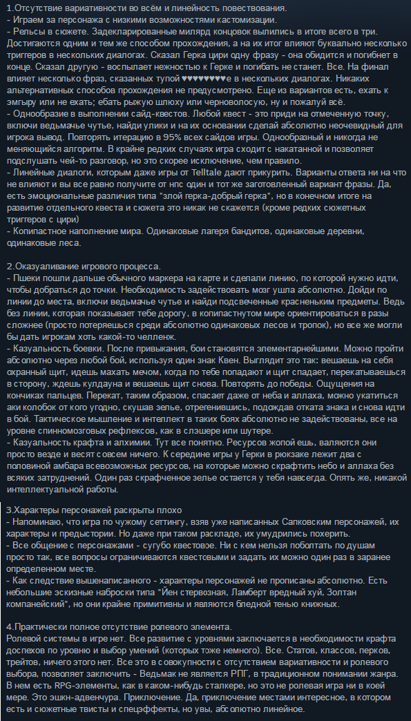 Рвутся только хейтерки, а остальные наслаждаются игрой и похуй на всю простыню каких-то доводов. Применимо к любой игре, кстати. Это реально надо быть каким-то ебланом, чтобы составлять список "100 причин, почему вам это должно быть невкусно".