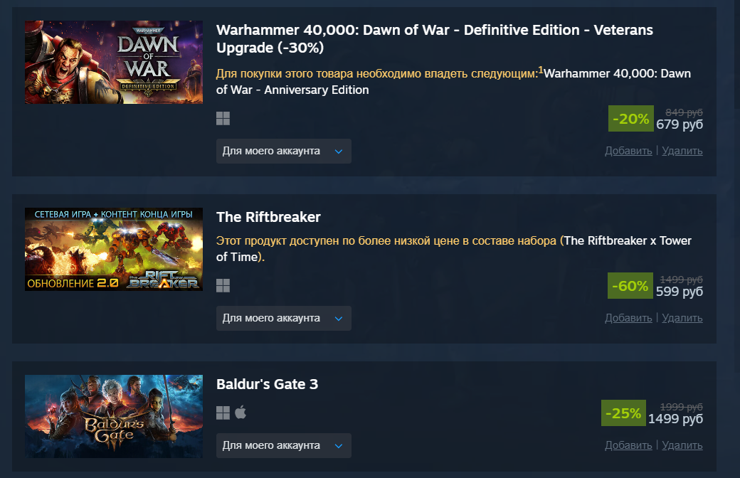 >>10032969 >Следующая большая распродажа будет весной Обычно зимняя самая жирная, проще брать на что скидка 90%, потому что 95% уже редко вывает и не факт, что на следующей распродаже будет 90