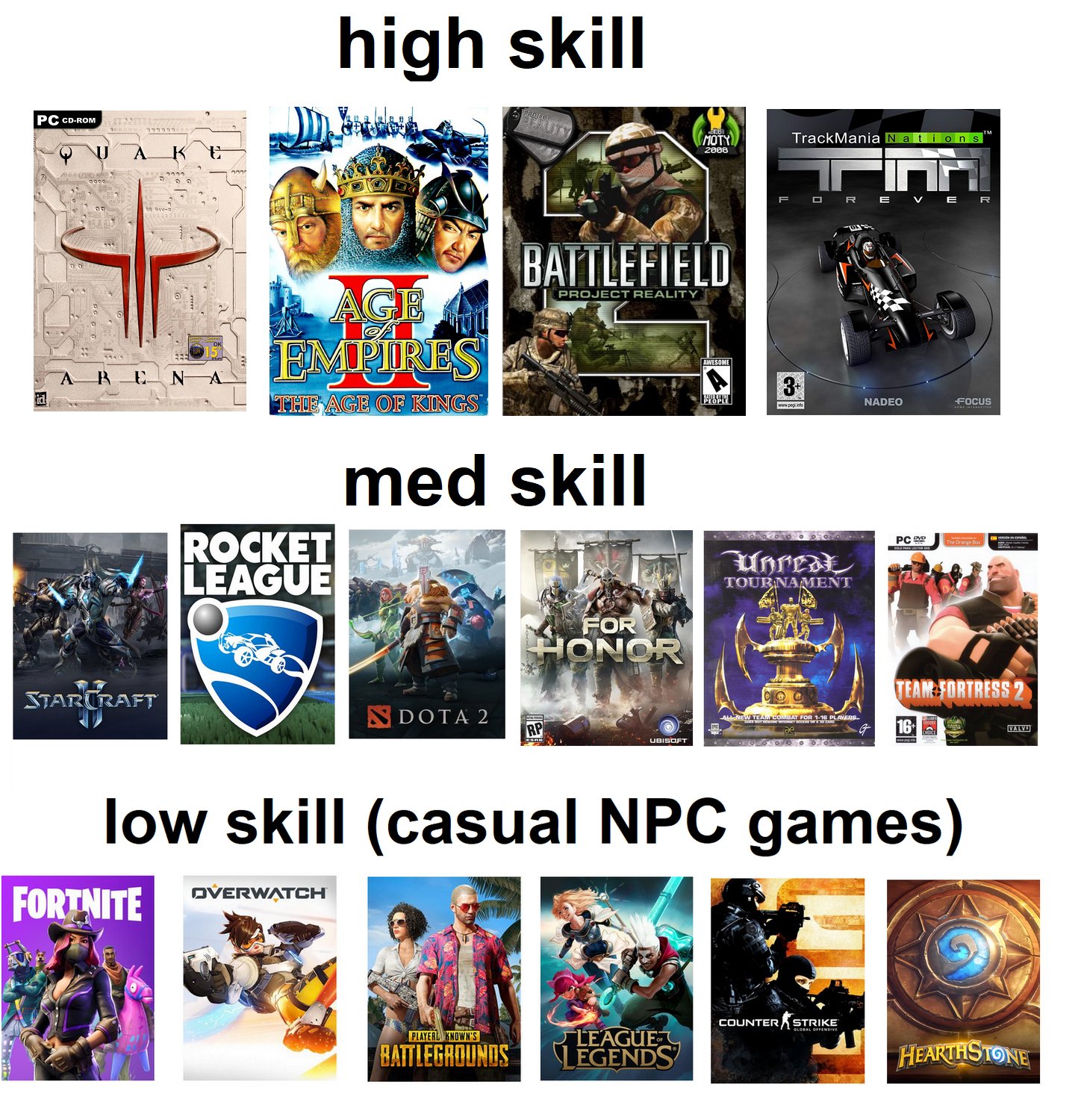 В КС все честно, все равны и находятся в одинаковых условиях. Игра не перегруженна ворохом отдельных механик на каждом персонаже, которые сломаются после очередной обновы. Все продвинутые механики игры, все эти раскидки, подсадки, тайминги - это все не перегружает игру, т.к. идут с базовых концепций и механик игры. Скилл идет из глубины, а не ширины механик или задроча метазалупы.