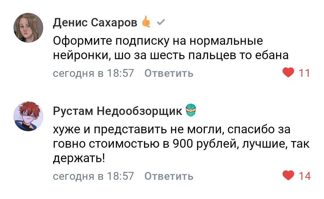 Твари, тяночка-хужожница уже заявила, что шесть пальцев случайно нарисовала, никакие нейросети в арте не используются.