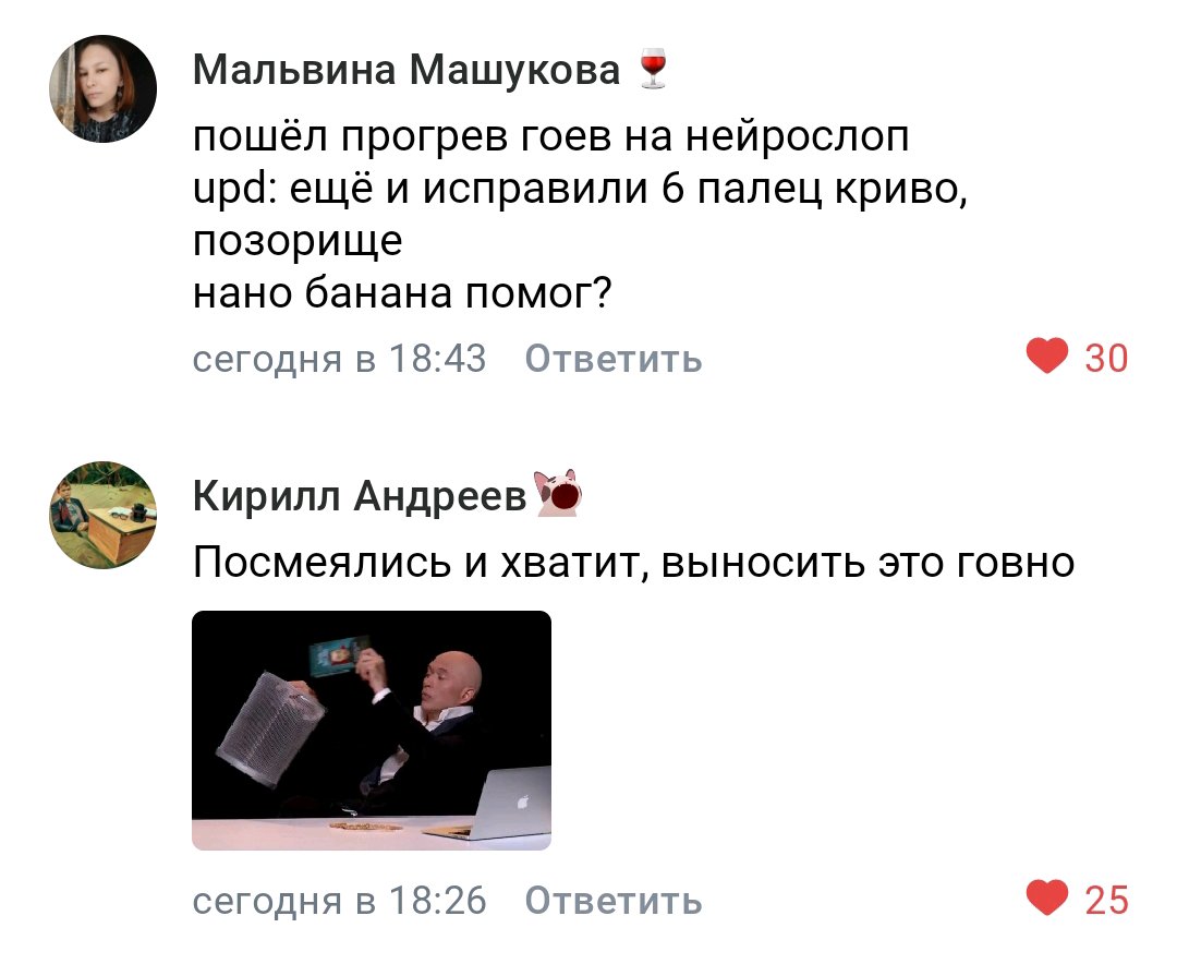 Да тут явно видно, что художник нанят за дошик и банку энергетика, но шизам дали грушу для битья в виде нейронок. Хотя, будь это реально нейронка, рисунок выглядел бы сильно скилловей.