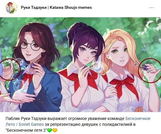 Ну я видел, как рисовали две левых руки, например. Как такое возможно вообще? Я понимаю, на стадии скетча, например. Но тут и лайн-арт, и покрас - ни разу в голову ничего не закралось?