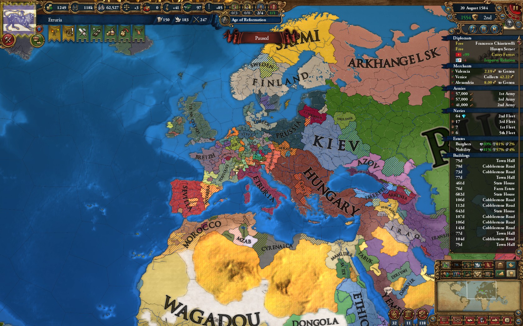 Заунил Австрию. Заметил, что все мажоры люто попущенны, я буквально всем в штаны насрал, никто даже свой регион не сформил. Увидел, что могу ещё Англию заунить через задания. Попробую весь мир завоевать, хотя не хотел изначально конечно. Учитывая что я поздно начал, будет тяжко.