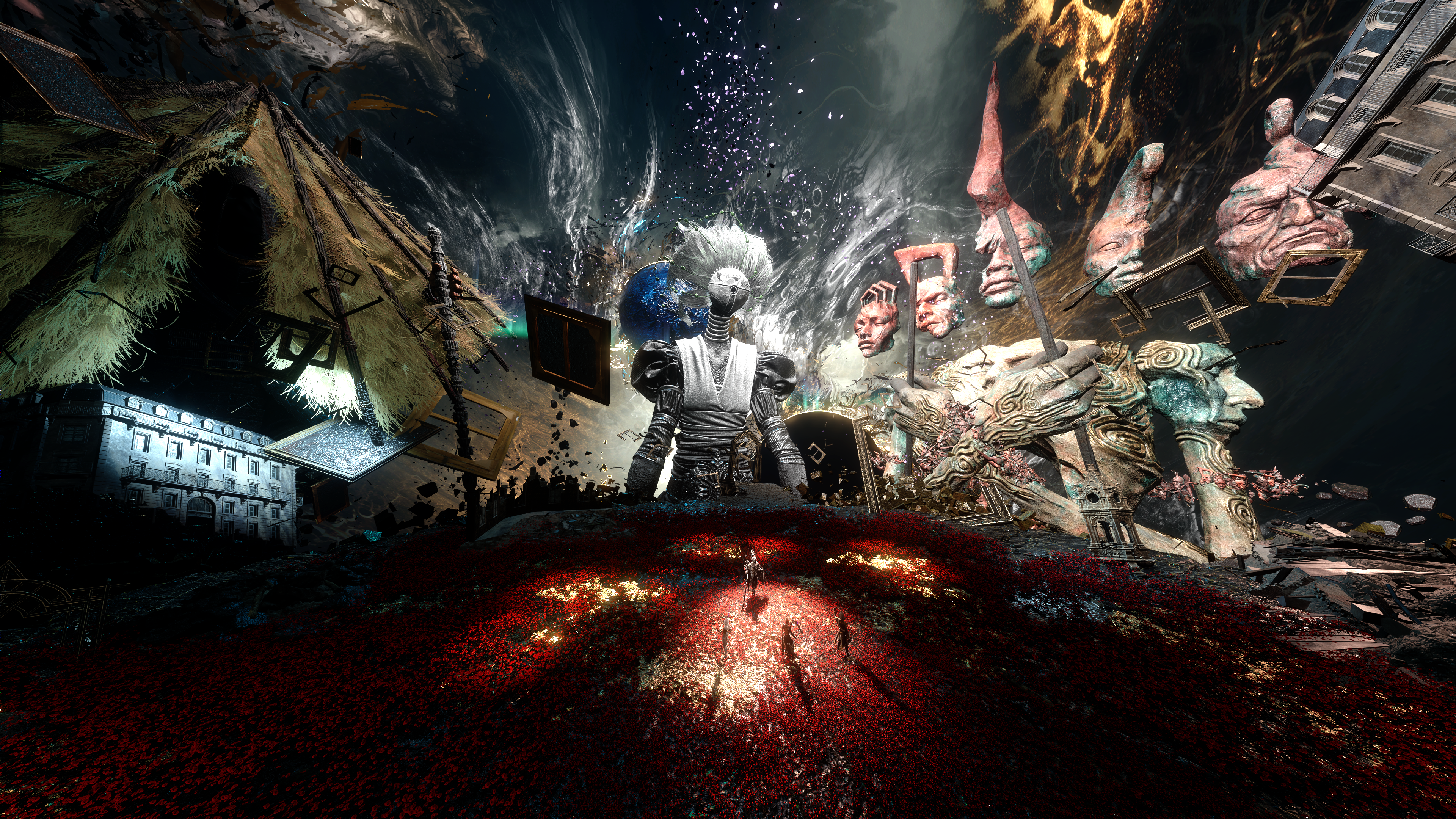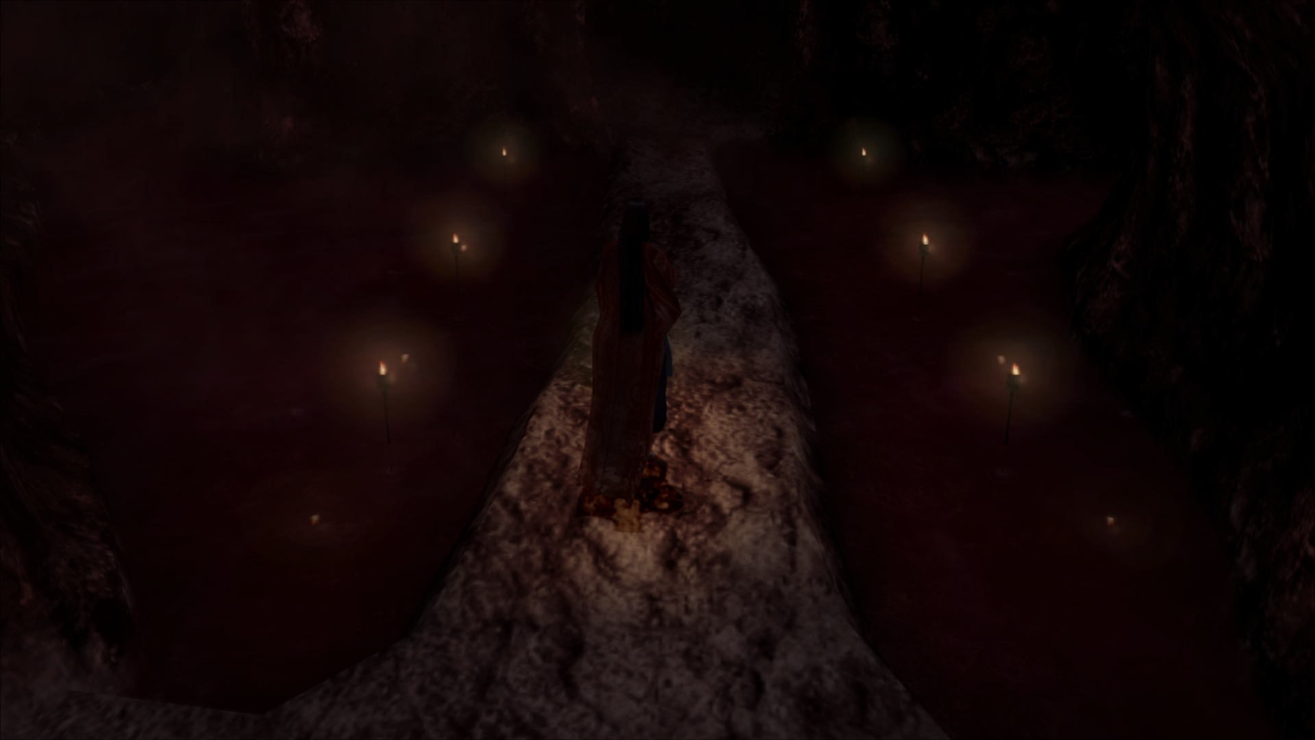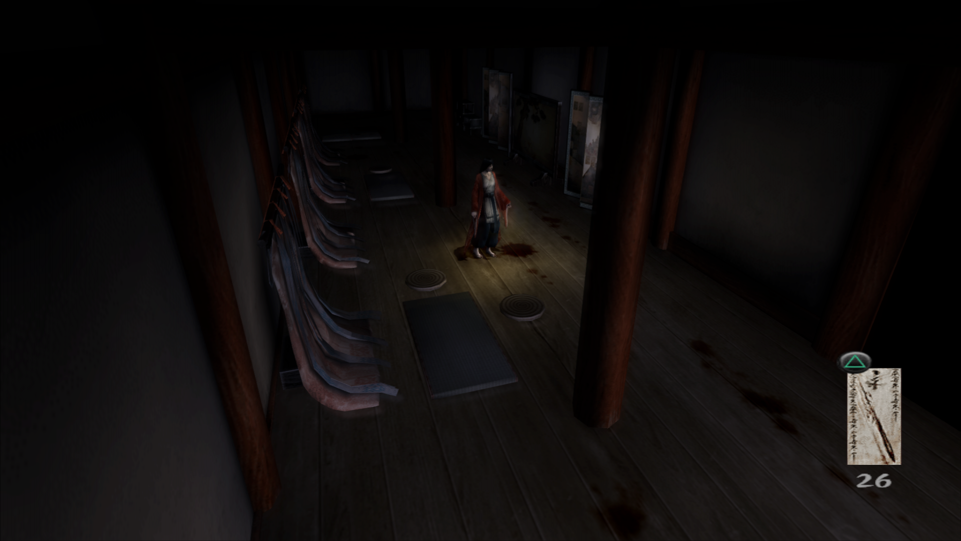 Атмосфера тут отличная. Эту фразу можно сказать про множество игр, даже если все остальные аспекты ужасны и портят эту самую атмосферу. Мол, "персонажи хуйня, диалоги хуйня, сюжет хуйня, монстры хуйня, все хуйня, но вот есть конкретный скриншотик, где камера закреплена под необычным ракурсом и все это НА СЕКУНДУ выглядит интересно" (пока не начнешь непосредственно играть в игру). Здесь же она реально на уровне более успешных конкурентов, причем от начала до конца, без хуйни. Такой-то сверхъестественный, эзотерический хоррор, главная тематика которого - обряды, призванные воскресить умерших. Только здесь не банальное воскрешение аля призраки/зомби/вампиры, а какая-то мифологическая около боди-хоррор хуйня, где умершие "сливаются" с живыми в процессе жертвоприношения, а спустя время начинают гнить заживо и нужно проводить обряд по новой. Это не совсем заслуга игры, т.к. напрямую спизженно с японских мифов, но тем не менее. Фатал Фрейм 2, кстати, очень похож тематически - тоже две сестры, тоже перерождение. Но здесь перерождение, как я уже сказал, более "телесное", а не духовное.