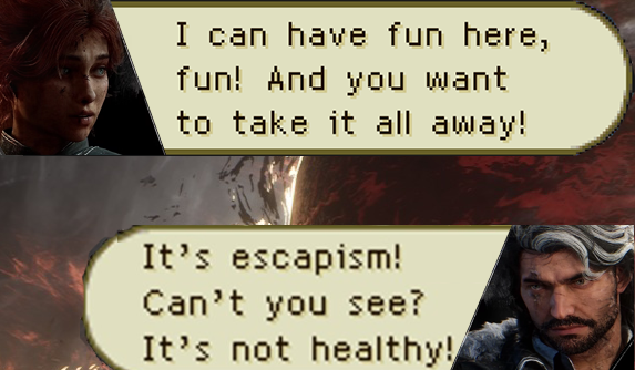 >>10055508 >тогда ты должен знать, что там всё подаётся в лоб Что ты несешь нахуй? Там наоборот почти всю игру подкидывают максимально абстрактные намеки. Очень грамотный "foreshadowing" в этой игре, когда под конец все идеально собирается воедино и все "рандомные" моменты оказываются нихуя не рандомными. Во время второго прохождения переосмысливаешь это все. Как тот же мимолетный фрагмент, где Версо подбирает и спасает Маэль при первой высадке Экспедиции, который заметит лишь внимательный игрок. Хуйню сморозил полную, в общем. Сюжет - сильнейшая часть игры. Потом ОСТ. Потом визуал. И на самом последнем месте геймплей.