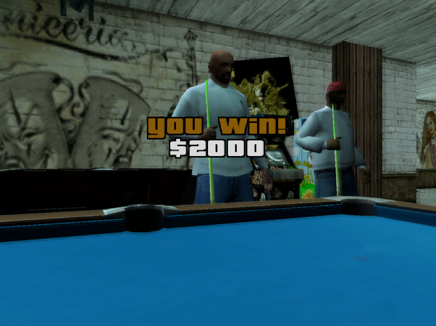 Заебали со своим АААААА винчиками. На пцсх2 играю в гта са. Играю за негра-косплеера на Бронсона. Кто-то знал что в этой игре есть полностью рабочий бильярд?