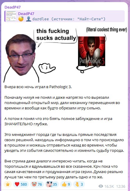 Это ещё не считая багов, которые ломают нахуй все скрипты превращая половину персонажей в котов Шрёдингера, которые одновременно не то живые, не то мёртвые.