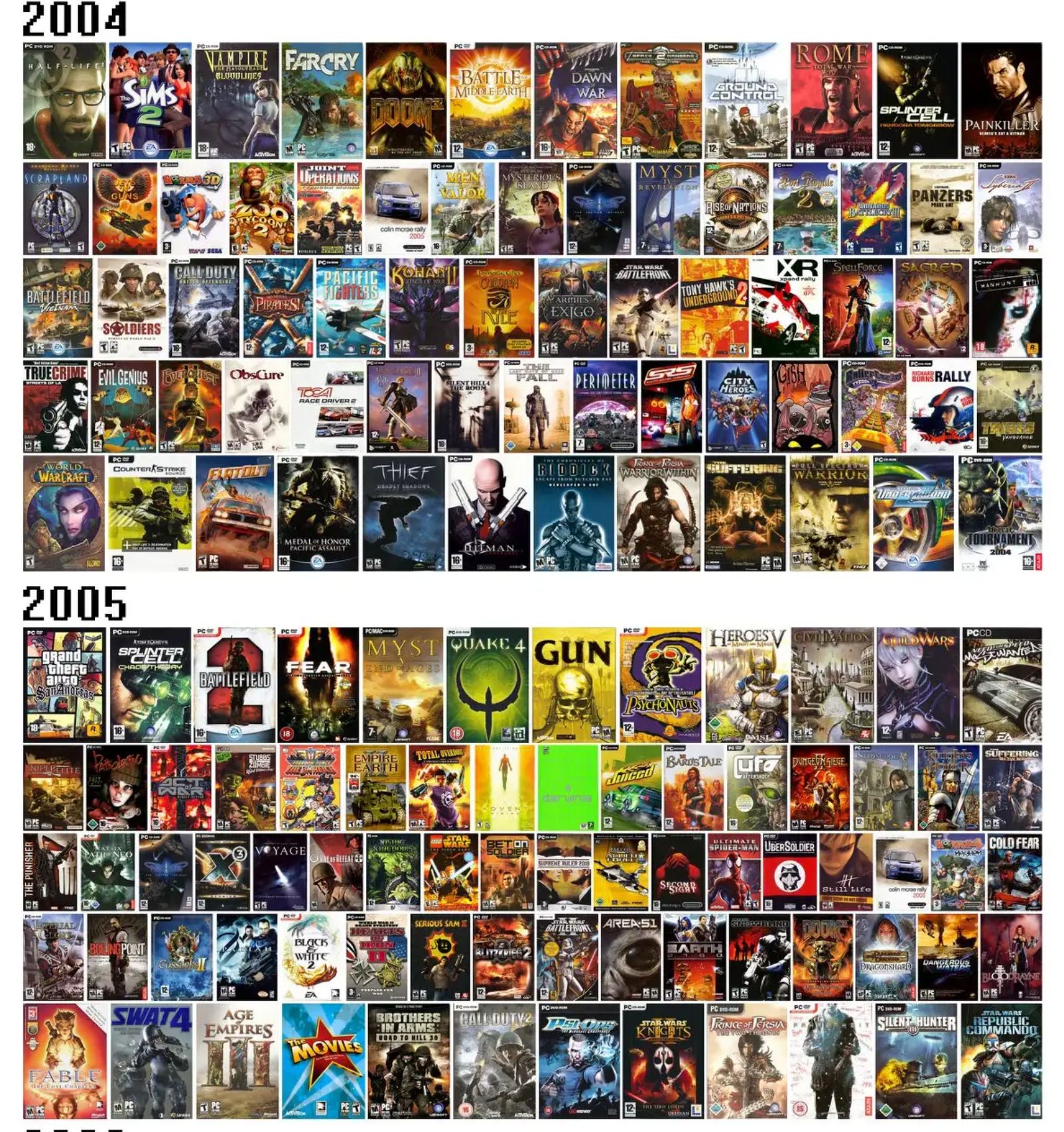 >>10067918 Всё так. Лично для себя могу отметить Симс 2, Битву за Средиземье, ДоВ, Рим ТВ, Вовно, Сан Андреас, Герои 5, Цива 4, AoE3, Баттлфронт2, Котор2 Ещё помню как в Empire Earth 2, Earth 2160, Armies of Exigo и Rise of Nations играл. Сколько же тогда ртсок было.