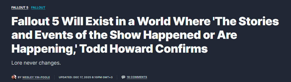 >>10068089 Чел, это не я себе навыдумывал. Это слова Тодда, что сериал — канон. Можешь хоть усраться в оскорблениях и брызганье слюнями, да только общий лор теперь будет основываться и на сериале. Так что НКР — В С Ё. Легион Цезаря — В С Ё. Хаус — В С Ё. Институт — В С Ё. Подземка — В С Ё.