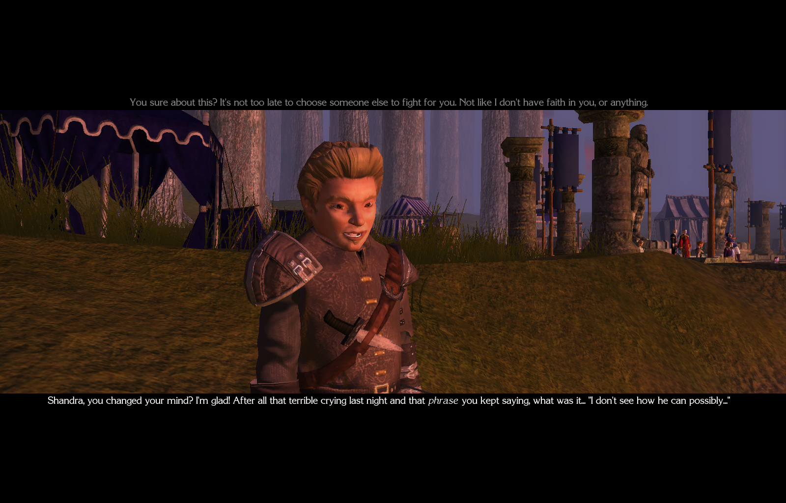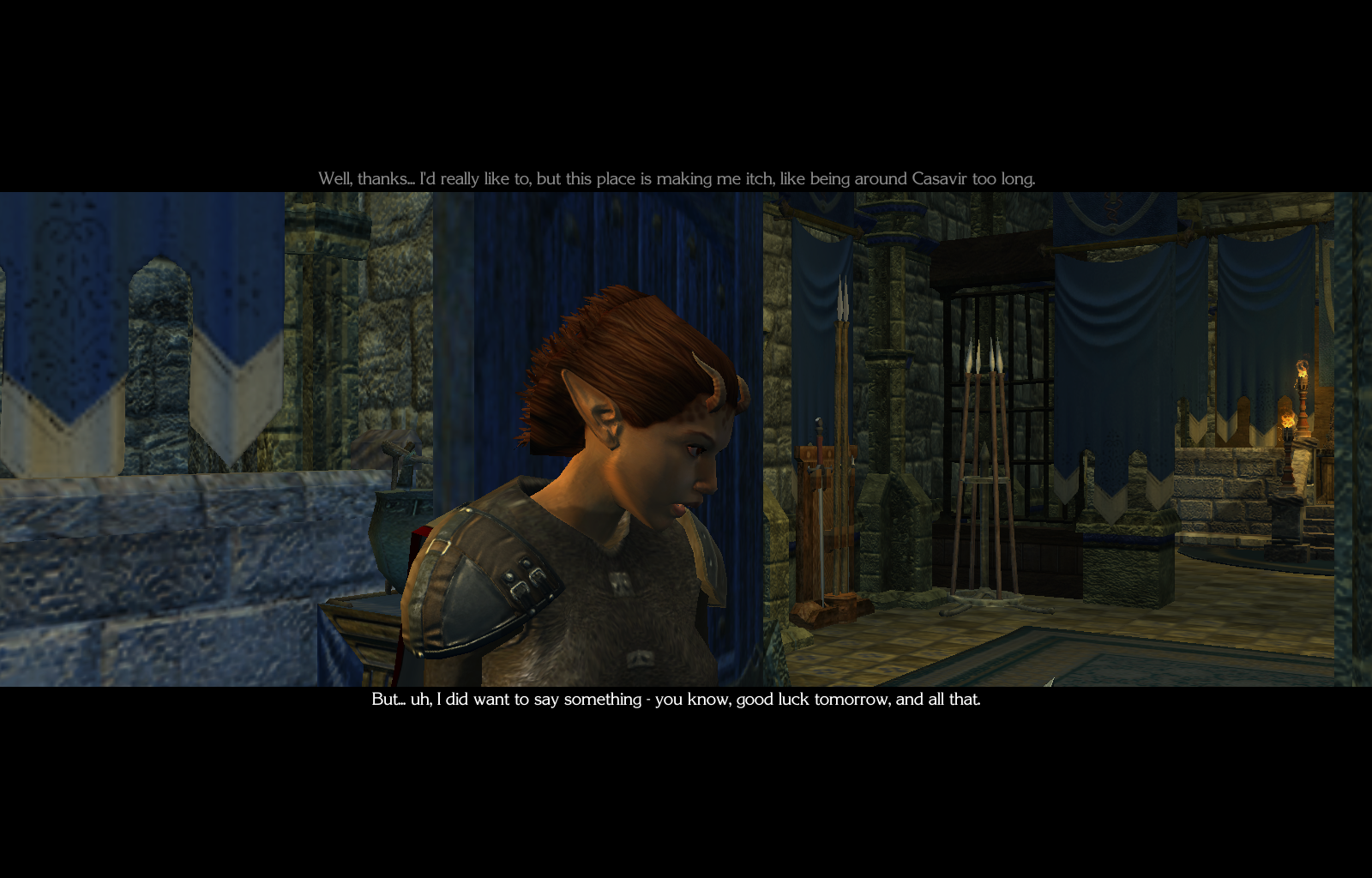 Охуительные истории, блять. Впрочем, чего это я - пока этот Эндерал выглядит как типичная cRPG-помойка с диалогами ни о чём и нелепыми нелогичными ситуациями. Только вот это не cRPG и как-то ожидаешь от мода на Скайрим чего-нибудь в духе Морровинда, в котором игрока действительно ждали, действительно встретили и дали инструкции, а у того не было причин возражать. А тут - ну, Эндерал полон доверчивых, простых, да и просто добрых людей.