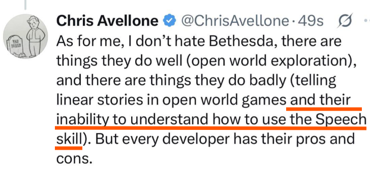 >>10068002 >5 квестов Уже квестов пятьдесят прошел. Вот только это были квесты из серии ели по маркерам и возьми/зачисть. Я купился на цепочку квестов где нужно помогать другим поселениям. На третий раз, когда очередное поселение нуждается в моей помощи, я понял что Тоддик водит меня пони по кругу и это не приведет к какому-то мега гига квесту на много опыта и лута. Это приведет меня к тому что я должен очередным бомжам с пустоши что-то строить из говна и палок.
