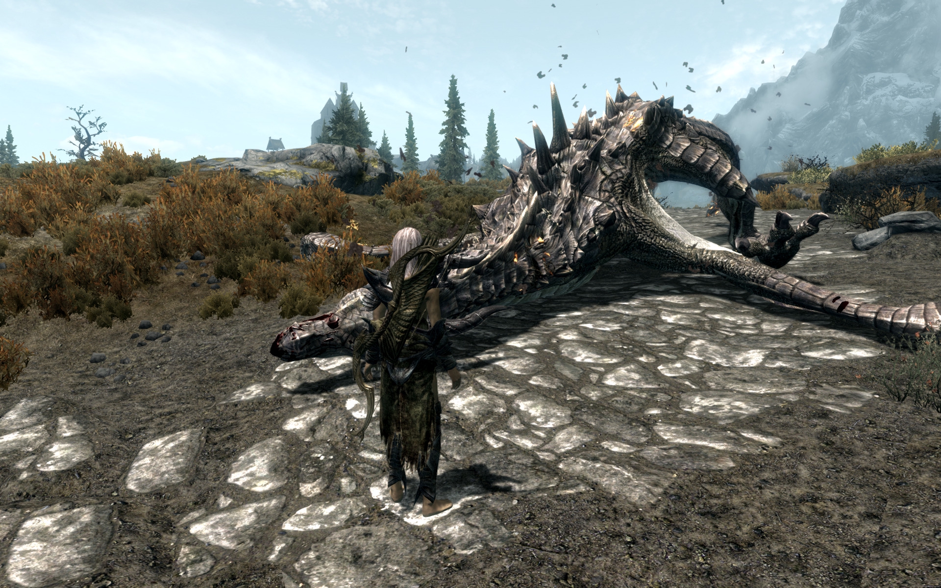 Убил первого дракона только сейчас. Решил вступить к Соратникам, хотя, учитывая мой (псевдо)отыгрышь их перерезать всех надо. Но мне прохождение квестов важнее, так что ограничился только фалмерской бронёй (которая так сексуально обнажает ножки и животик) и ледяной магией. В качестве первого задания сказали подраться с тем пацаном из Рорикстеда - Эриком, что назвался Грозным Убийцей. И скажу, что на хай лвлах он хоть и не убийца прям, то довольно толстый, так что драка долгая вышла.