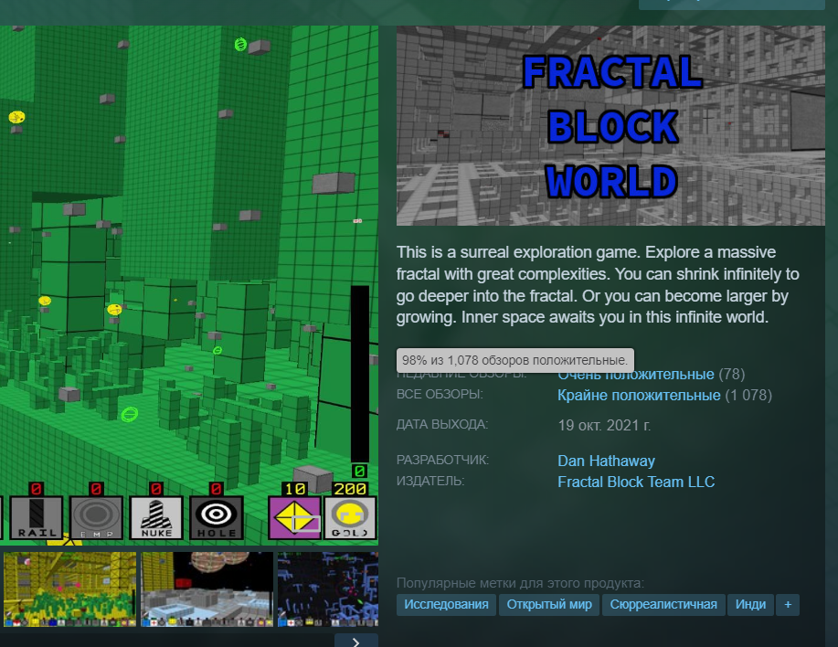 Fractal Block World Не особо и hidden, но точно не для всех игра. Играть в это я конечно особо не стал, но задумка охуенная и своих аутистов игра найдет