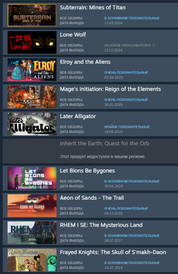 >>10057905 (OP) Хидденгемы ищутся не так. Всё равно тебе будут советовать всю популярную йобу. Все делаем как я. Открываем свой вишлист в стиме, сортируем по рейтингу продаж, исключаем ранний доступ и пререлиз. Листаем вниз и постим скрин с 10 последних.