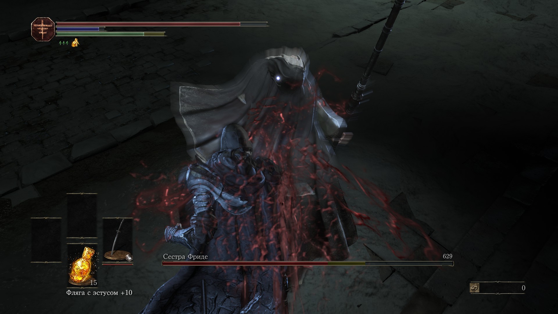 А, ну и сама хит полоска практически не отнимается от атак. В Кивами 1 она падала до нуля от 1-2 атак, а здесь обратная крайность - она почти не опускается, даже если получаешь пиздюлей.