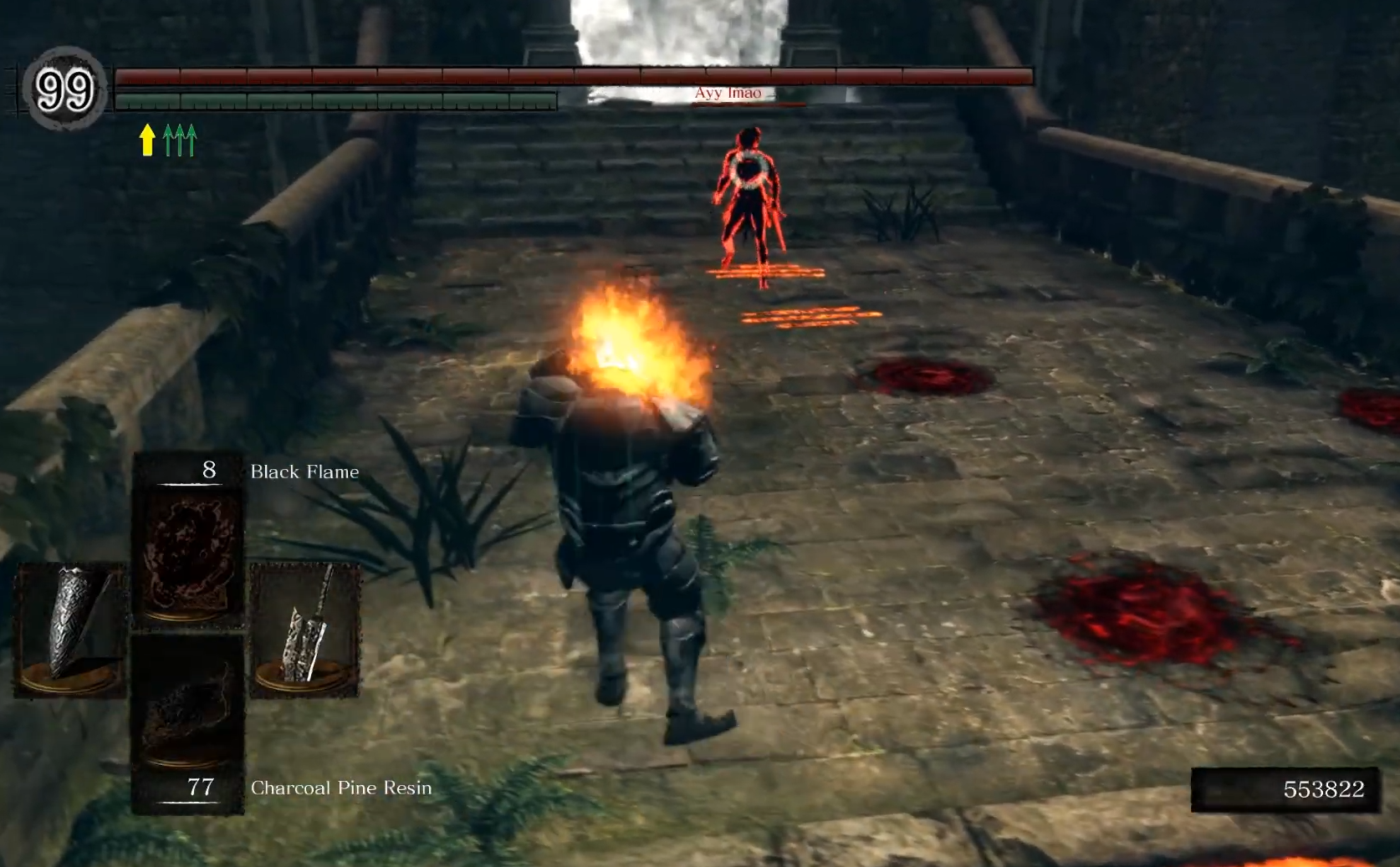 А нахуй вообще задрачивать заскриптованных нпс, учить их паттерны и прочее. Для чего? Чтобы потом гордиться собой, что ты выучил мувсет у болванчика лол? Другое дело пвп с сосаликах. Вот там нормальные пацаны сидят. Как же встает хуй, когда ты вторгаешься к какому-нибудь обоссанцу и убиваешь его вдали от костра, зная, что чмохе снова придется топать через весь уровень ножками. А когда был баг и можно было вторгаться прямо на арену во время боя с боссом мммм.