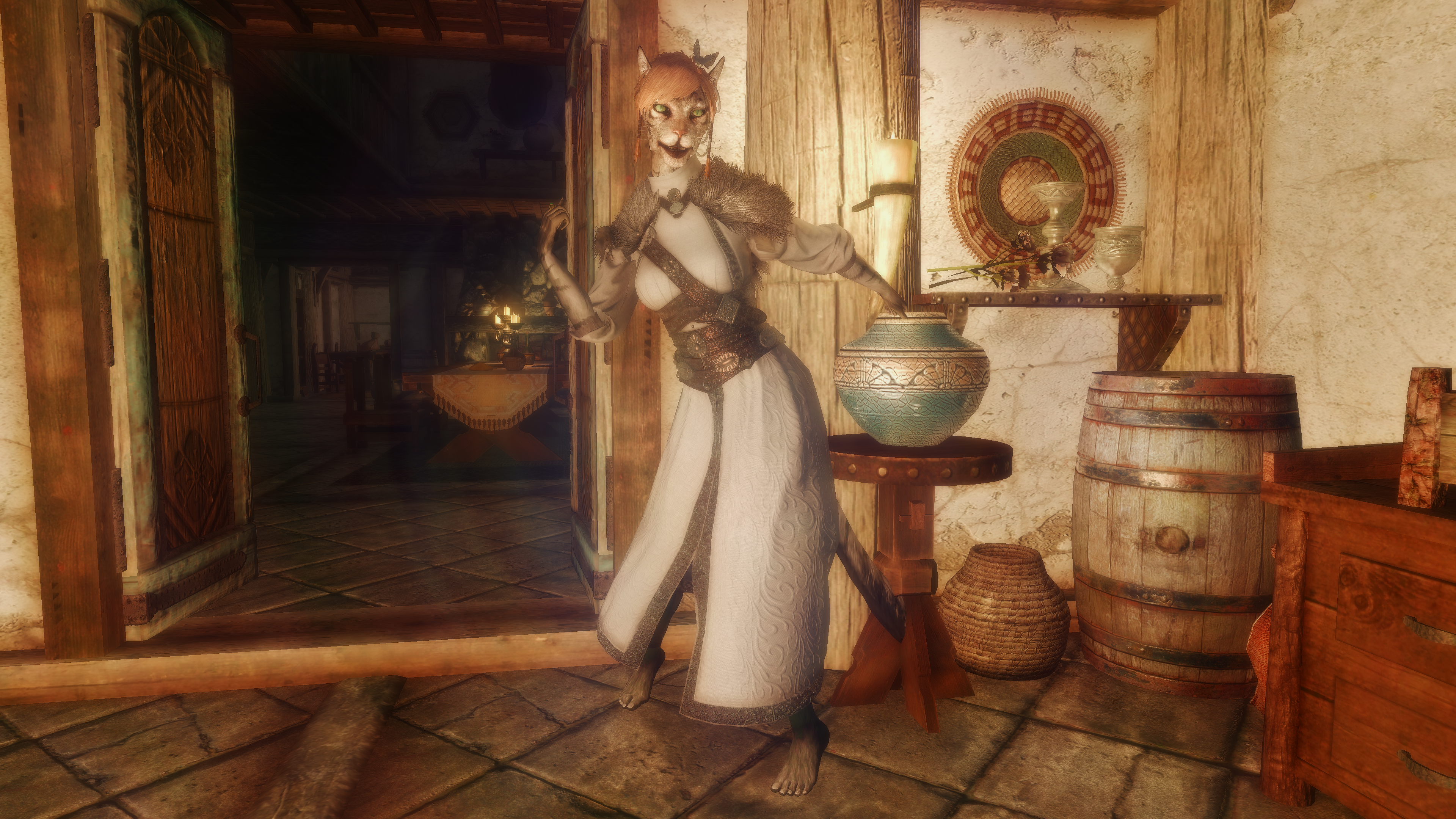 Как же она довольно на свой трофей смотрит. Ну и второй скрин... просто прекрасная. Эти скрины, где она босиком в этом платье просто 10/10.