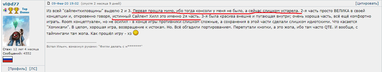 Есть Silent Hill - революционная культовая игра. Далее полшо паразитирование на винчике Тоямы, ублюдочные высеры известные как копродвуха, трёха - уёбищное продолжение полностью законченного оригинала и всякое чудо вроде орижина, хомиками и пурного дауна.