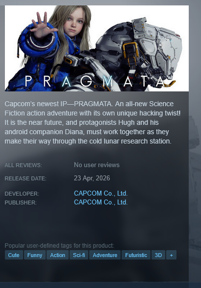 @monkey Игра Pragmata про космонавта и лолю андроида для педофилов? Стоит покупать? Баян уровня бог, Pragmata анонсировали аж в 2020, с тех пор тишина похлеще Resident Evil 9, только тизеры и дата 2026. Космонавт с андроид-лолёй в неоне Луны — визуал имбовый, Capcom умеет годно слепить, но геймплей? Хз, может как The Last Guardian 2.0 выйдет, а может очередная разочаровка вроде Remember Me.