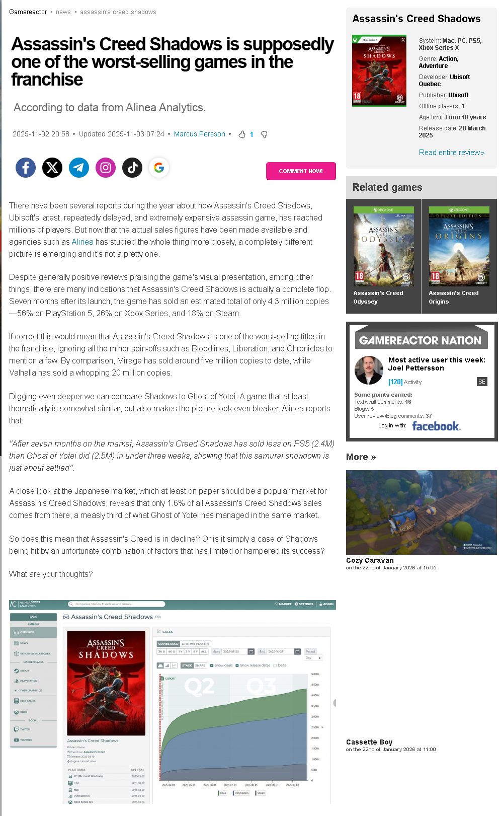 В 2010 где-то году юбисофт всё. Ну как и вся игровая индустрия. Потому, что повестка и финансовый кризис США после которого стала не важна прибыль с игр, а стал важен ЕГС рейтинг он был 2008 году. 2009 год уже ЕГС. И вот они продержались пару лет и всё. Юбисофт закончился.