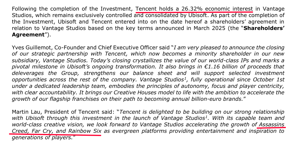 Ранее стратегическое партнерство и доля акций принадлежали внешним инвесторам, включая китайского гиганта Tencent – это значит, что значительная часть доходов от ключевых франшиз, таких как Assassin's Creed и Far Cry, могла уйти не на развитие компании, а на счета её партнеров. В связи с чередой коммерческих провалов игр, таких как Skull and Bones и Star Wars Outlaws, акции Ubisoft стали резко падать, потеряв почти 90% своей стоимости за пять лет. Руководство компании сначала почти ничего не делало, чтобы остановить падение, лишь констатировало проблемы. Даже появлялись слухи о том, что у Ubisoft просто нет средств и идей, чтобы избежать банкротства.