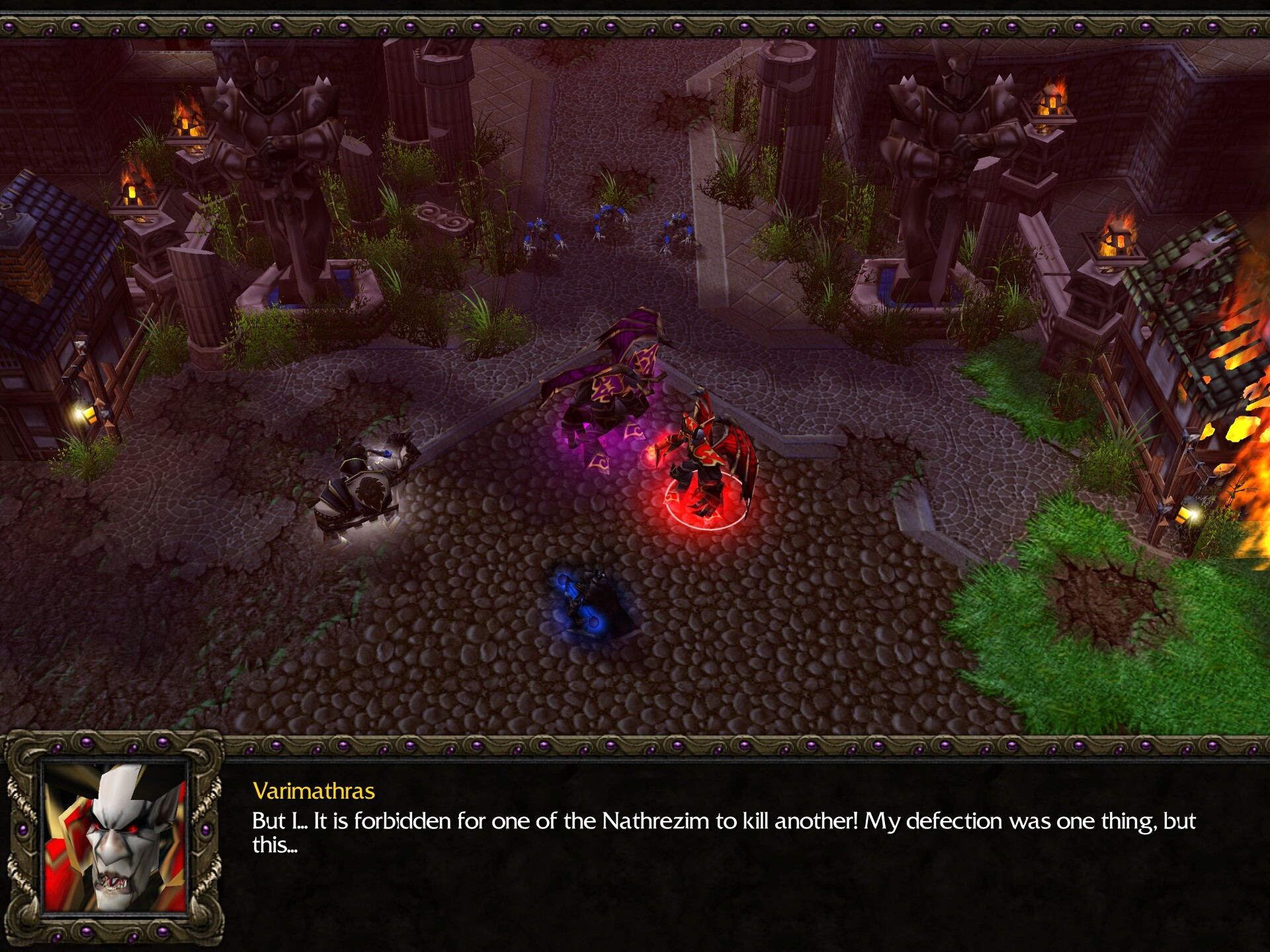 >>10083278 События открывающего синематика происходят во сне Тралла, а события там происходящие являются видением об войне, которая добьет орков до исхода на Калимдор, кстати, дуэль орка и футмана происходит там же, а вот следов от падения инферналов нигде нет и в помине.