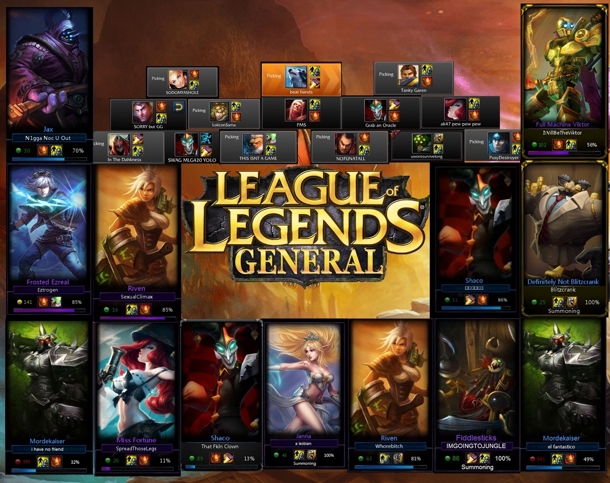 >>10081309 > В общий чат можно писсать НИГГА и это не считается оскорблением Чел блять, если кто-то данное зарепортит то ты улетишь сперва в мут а затем в бан У меня блять дюжина акков перманентно забанены, ты о чем вообще пиздишь >Какие нахуй свапы лайнами Такие блять, твоя роль это саппорт а дуо пидорасов любовников раскидало на АДК и на ТОП. И вот тебя просит с топом свапнуться, ты отказываешься и тебе летят два репорта. А репорты никто не проверяет, сейчас может нейронку прикрутили но это не лучше.