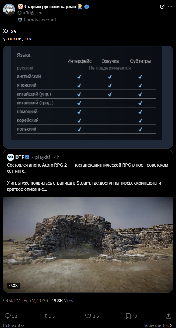 >>10083520 >Купи и играй, как нормальный человек >нормальный человек >нормальный Ебаться со сторонними сайтами, чтобы купить у бота гифт или ебаться с аккаунтом другой страны и пополнением там. Ебало "нормального" представили? ещё и tos стима нарушать, кайф >>10083513 Проиграл в голос с этих "нормальных" ГЕЙмеров. Сидят и ждут пока им поиграть дадут