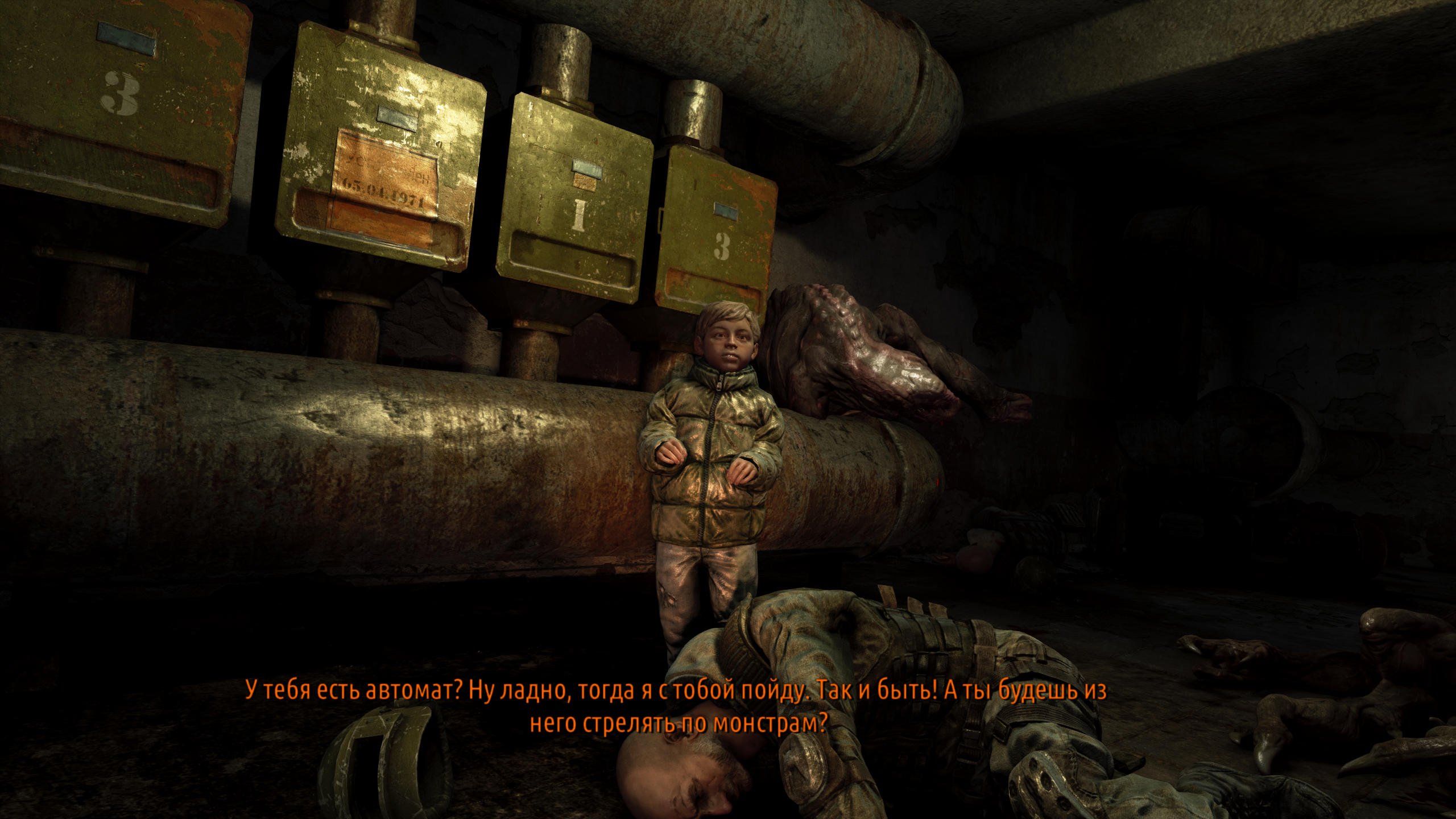 Спустя некоторое время я смог открыть дверь найдя пароль через камеры. У негра пришлось отобрать мое оружие силой, ему это не сильно понравилось, он не доверяет мне и остался сидеть на своем месте. Я нашел другого выжившего, этот вроде адекватнее. Но рядом с ним замерзший труп насмерть. Как он выжил? Все люди здесь вызывают подозрения. Но опять ебаный электрический щиток, придется договариваться с негром. Сошлись на том что я дал ему огнемёт который нашел где-то. Все идет ровно. Двигаюсь дальше.