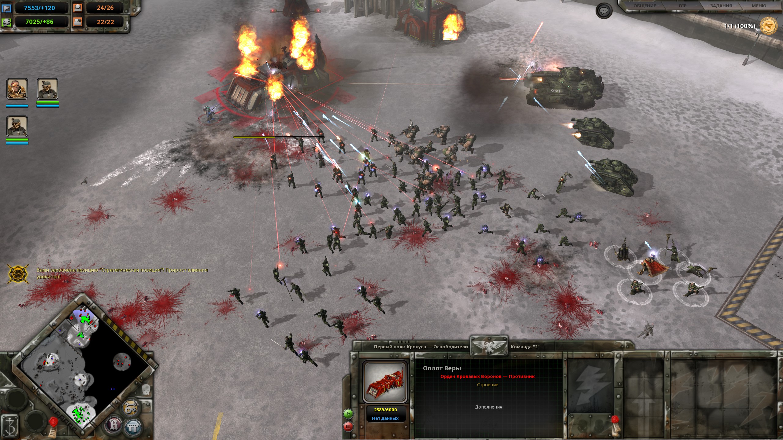 Каеф. Пришлось, правда, долго ползать по карте, аккуратно сшибая укрепления артой, наводимой ассасинами - но это таков уж геймплей за Имперскую Гвардию, ничего не поделать. Это тебе не эльдары, которые могут просто скрытно телепортироваться прямо врагу за спину, заспидранив почти любое сражение.
