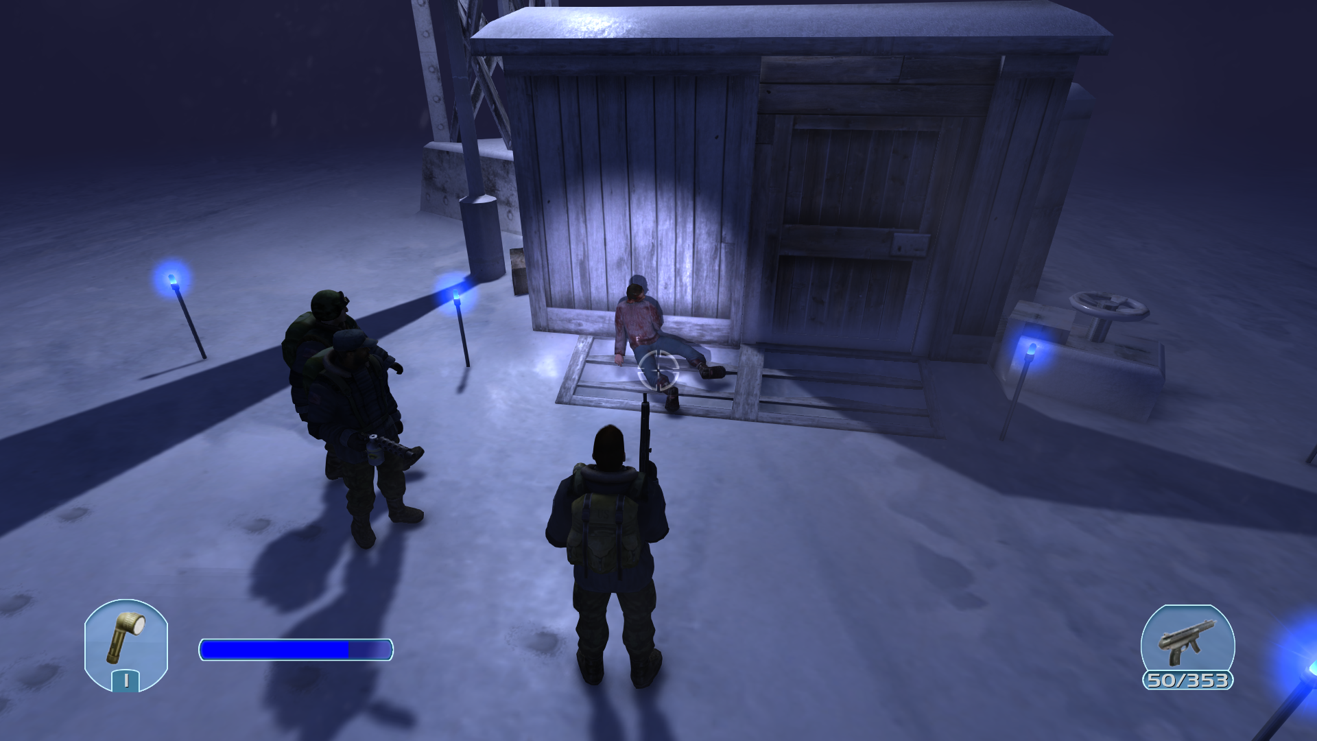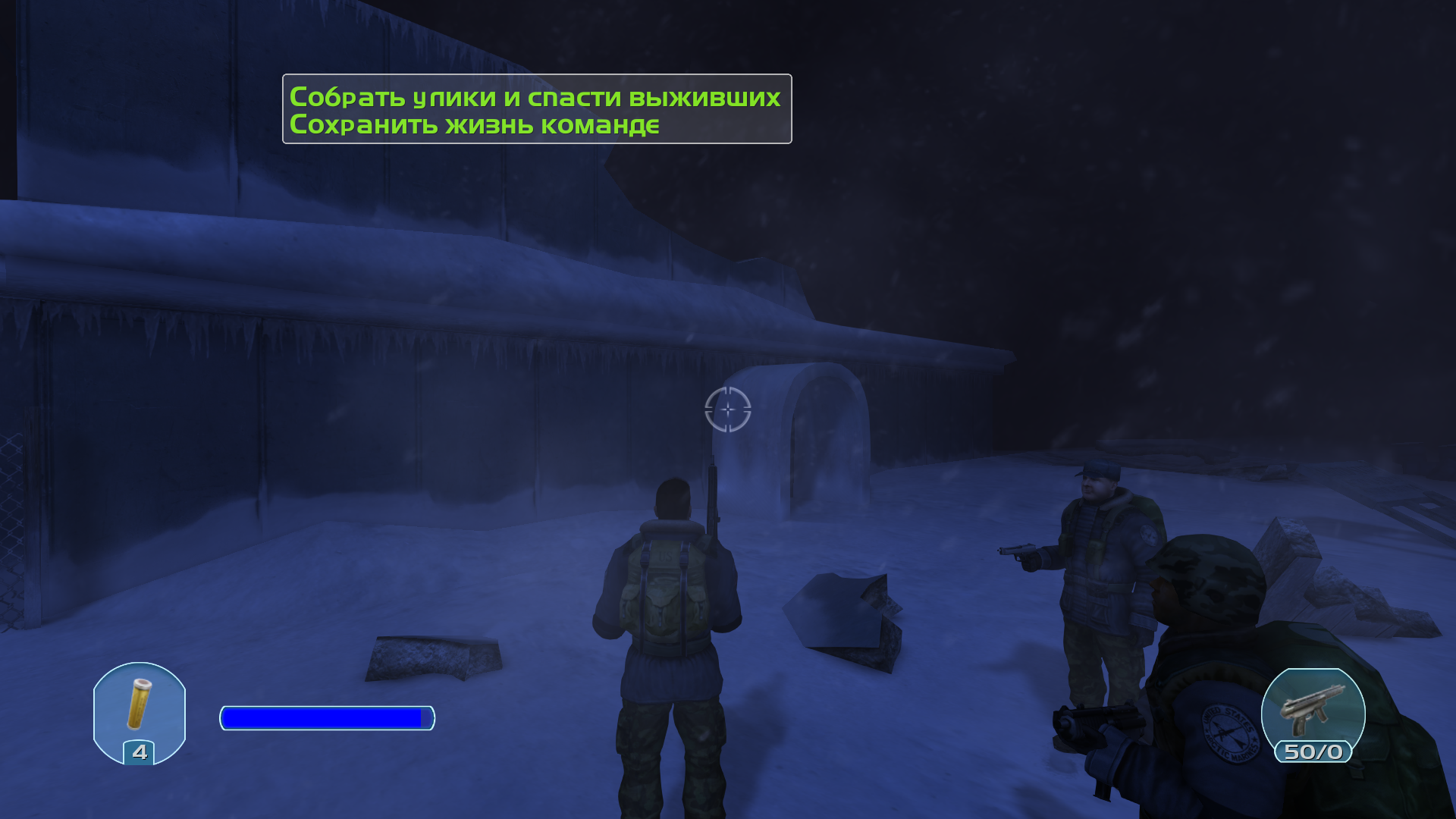 Я и моя команда высадились посреди северного полюса, нам был дан указ найти выживших на этой базе. Судя по всему произошла катастрофа, здания внутри в нестабильном состоянии, проводка и электричество замыкает, возможно последствия бури, выживших еще не довелось встретить, температура достигает до минус пятидесяти, не исключено если кто-то погиб от обморожения. Пробираясь вглубь мы наткнулись на неопознанный объект, похож на инопланетный корабль. Найден ключ он следующего сектора, выдвигаемся.