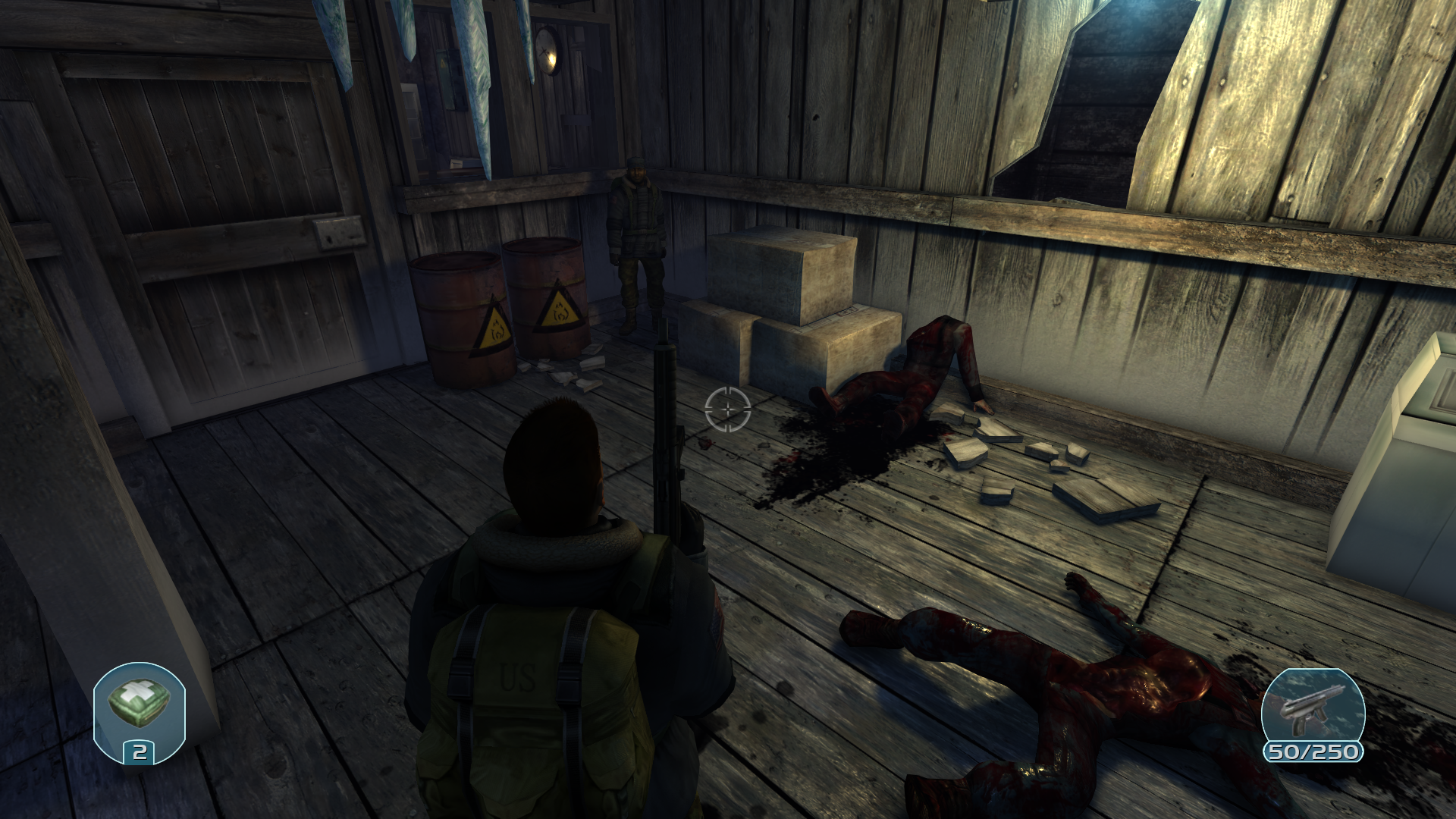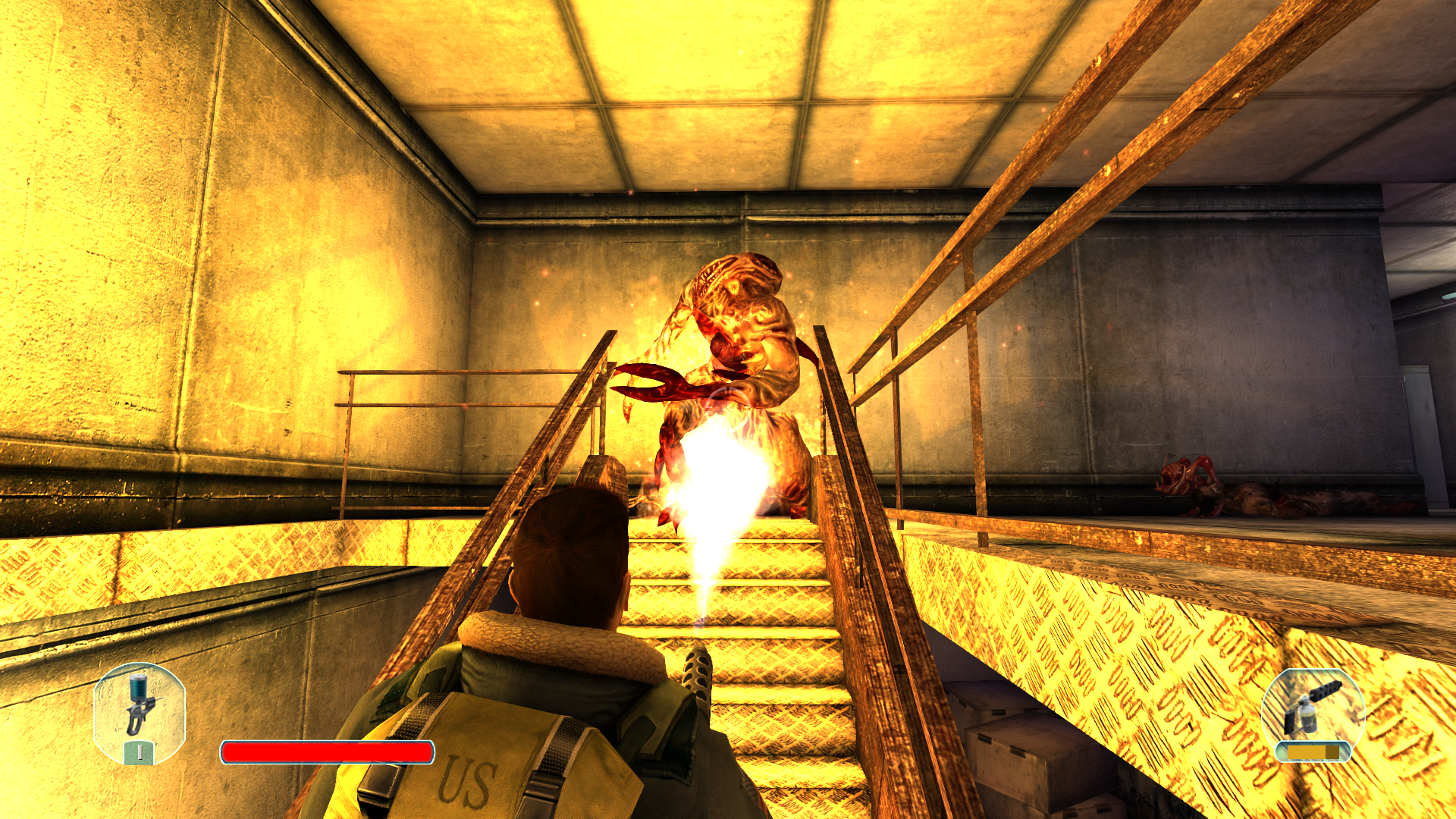 Продвигаясь с напарником и очищая этажи случилось ужасное... На нас напали со всех сторон. Я все еще не могу понять что произошло, но моего напарника смертельно ранили... И это не убило его, он превратился в мразь. И тут появляется два вопроса... Он был давно заражён, или же вирус способен настолько быстро порабощать свою жертву? Не важно, любой из вариантов вызывает дрожь. С боеприпасами проблем нет, теперь мне похуй на выживших, кажется операция по спасению не оправдывает себя, все люди умирают. Приоритет спасти себя.