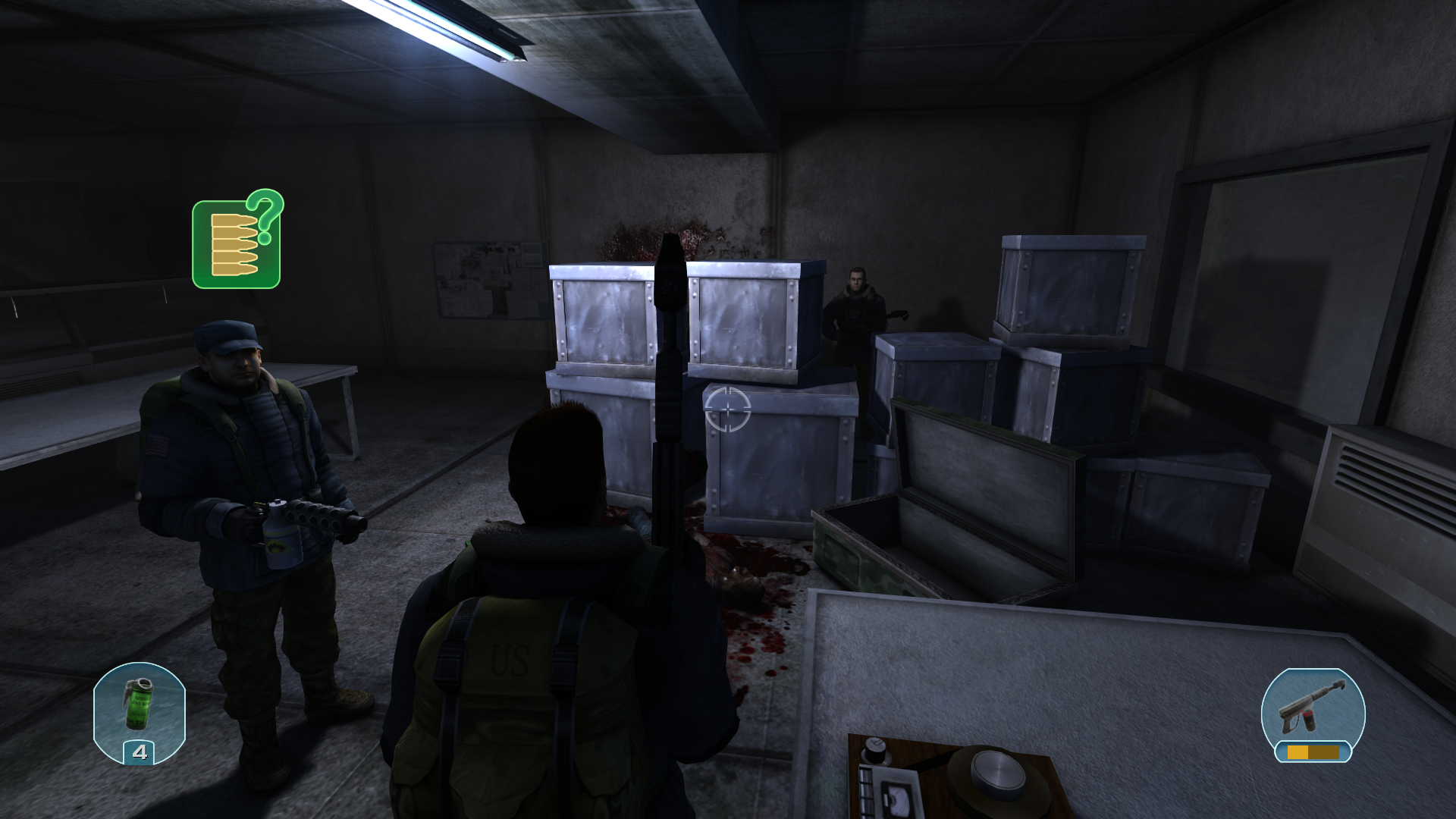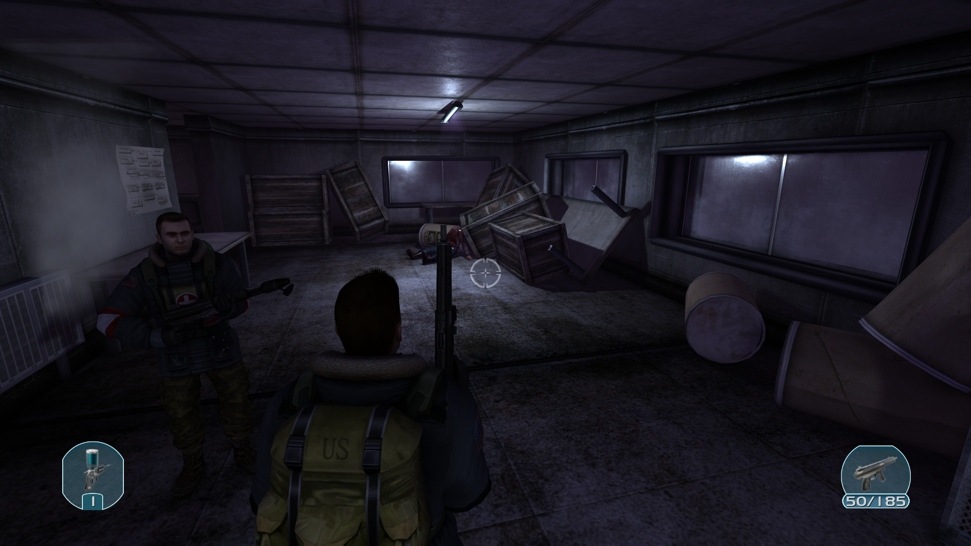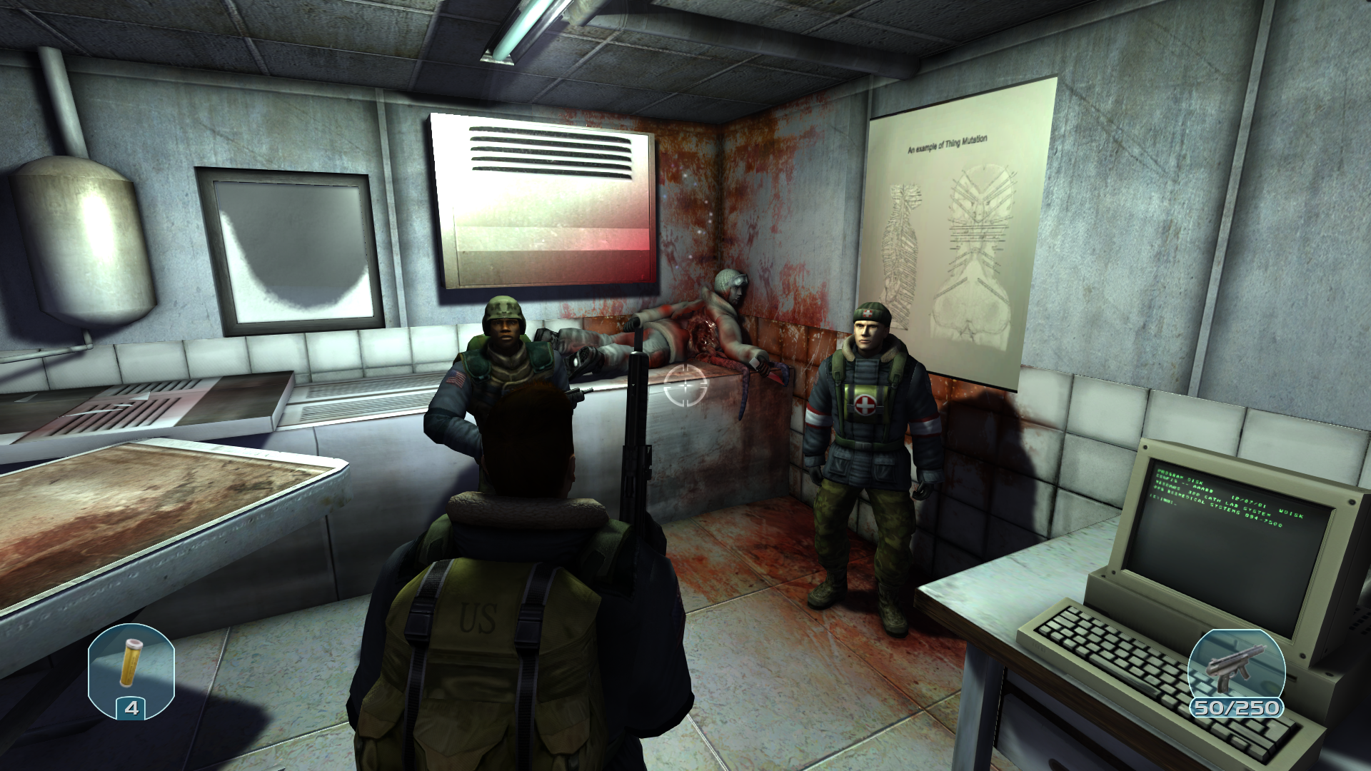 Внутри лабораторного отсека куча записей о неком биологическом вирусе. Наш инженер смог починить проводку, когда включилось освещение нас поверг в шок мертвый распидорасиный труп человека. Двое моих коллег все еще прибывают в ахуе.