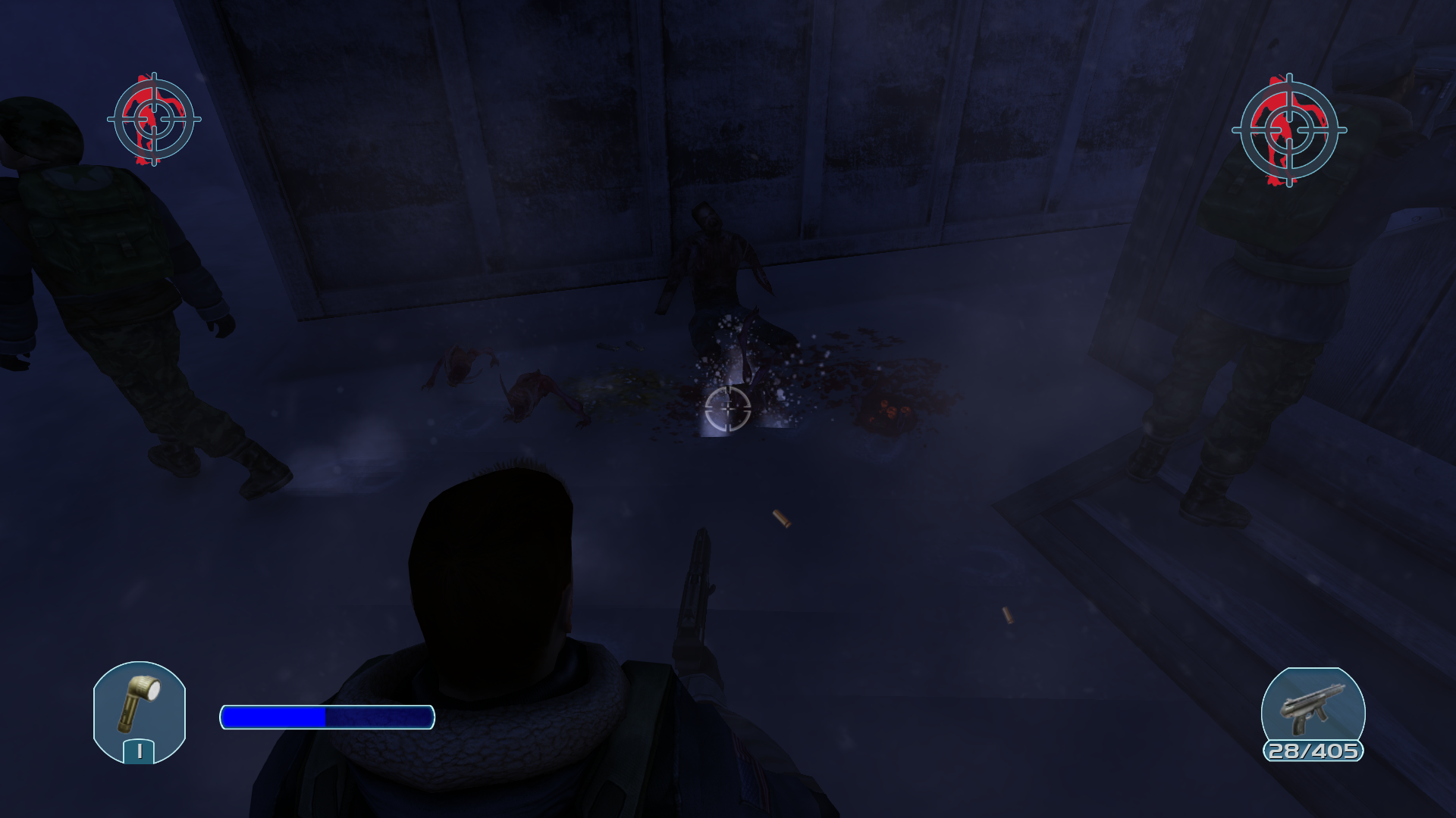 Я смог потушить пожар при помощи огнетушителя, не сразу понял как это сделать. Найдено еще две жертвы. Судя по всему их убил либо мороз, либо те твари. Как показала практика против них хорошо срабатывает огонь, который я дал негру. Комбинация огонь + огнестрел для них смертельна.