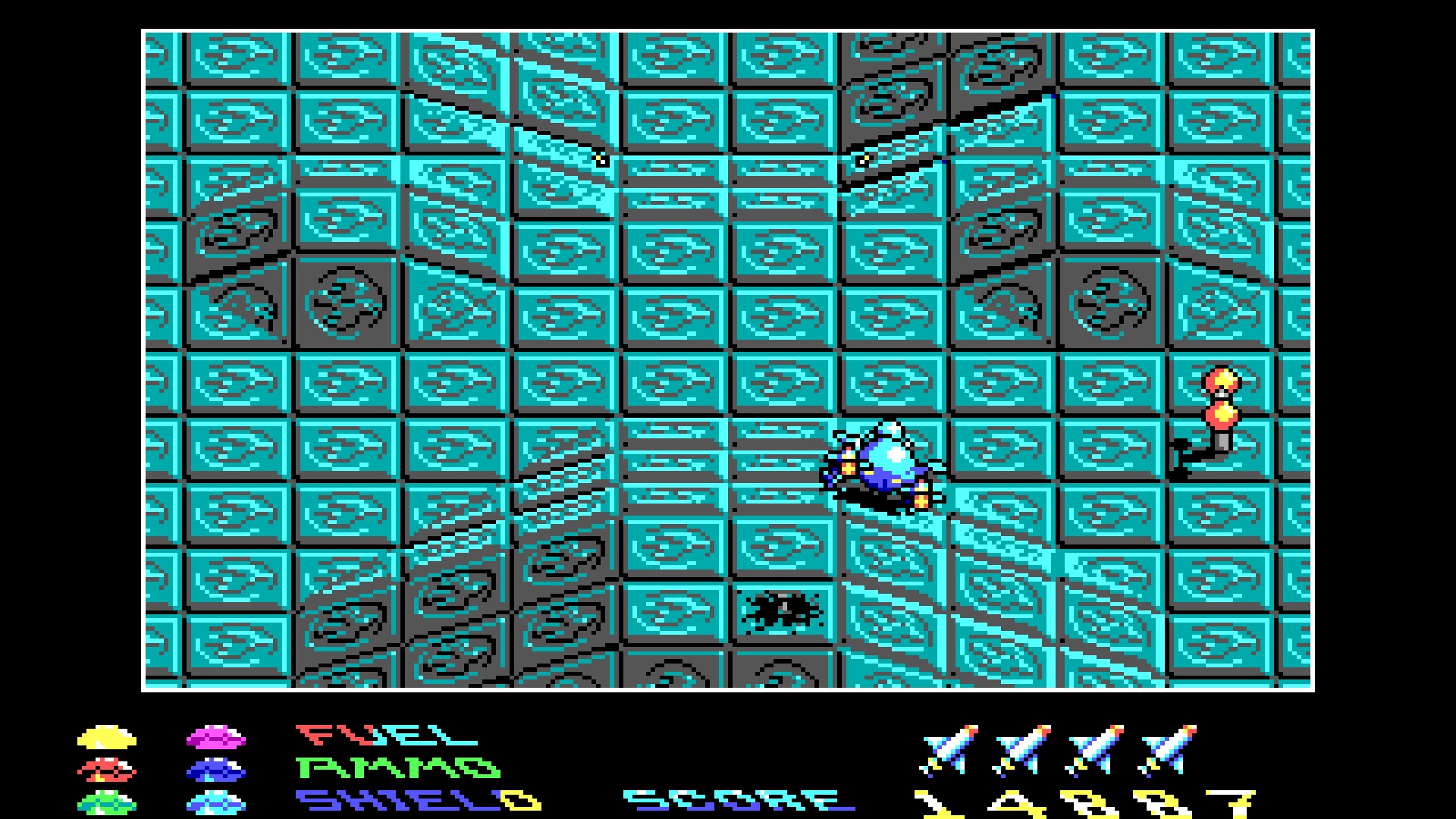 В-третьих, разнообразные уровни. Все уровни отличаются визуально и на каждом есть свои гиммики: где-то нужно взрывать трансформаторы, чтобы открыть ворота, где-то стрелять в кубики льда, таким образом двигая их и протискиваясь между (лайтовые пазл-элементы, скажем так), на каких-то уровнях начинает мешать окружение (вода, толкающая твой корабль вниз), а на предпоследнем камни трансформируются во вражеские корабли и начинают стрелять.