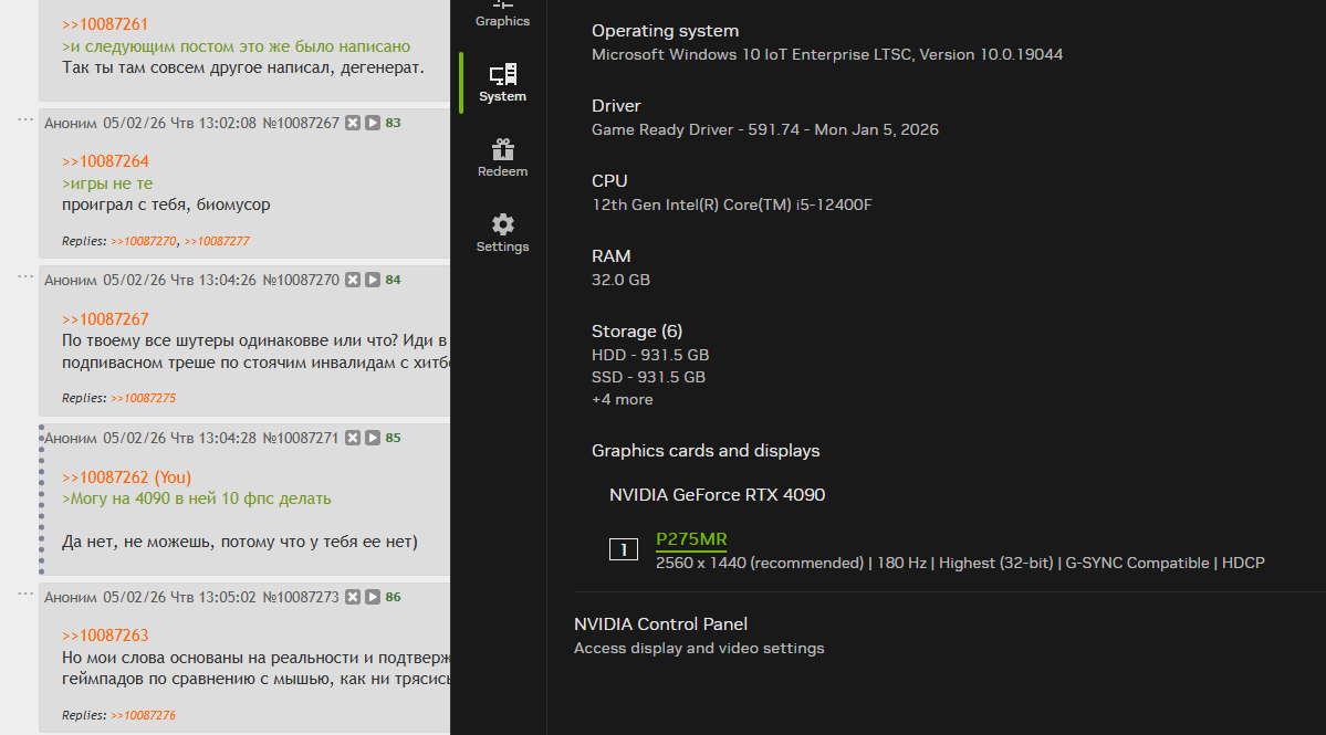 >>10087299 >Практика показывает, что сотни миллионов игроков, в том числе и я, легко и с удовольствием играют в игры, в том числе и шутеры, на геймпаде. Что дальше? Как это изменит тот факт что геймпады как устройство ввода для шутеров хуже - не понятно. Я ж вам не запрещаю срать стоя на голове и потом жрать своё говно, просто говорю что вы ебанутые. >Тут не о чем спорить, потому что очевидно, что для релакс-игры, развалясь на диванчике и пяля в телек геймпад удобнее в силу форм-фактора. А я спорил что овощи разменивают удобство управления на удобство жопы? Ещё удобнее развалиться и смотреть стримчик, вот те гигачады вообще свержлюди и топовые игроки. >Поэтому пошёл ты нахуй со своими фанатичными визгами, в этот раз окончательно. Или что, ножкой топнешь?