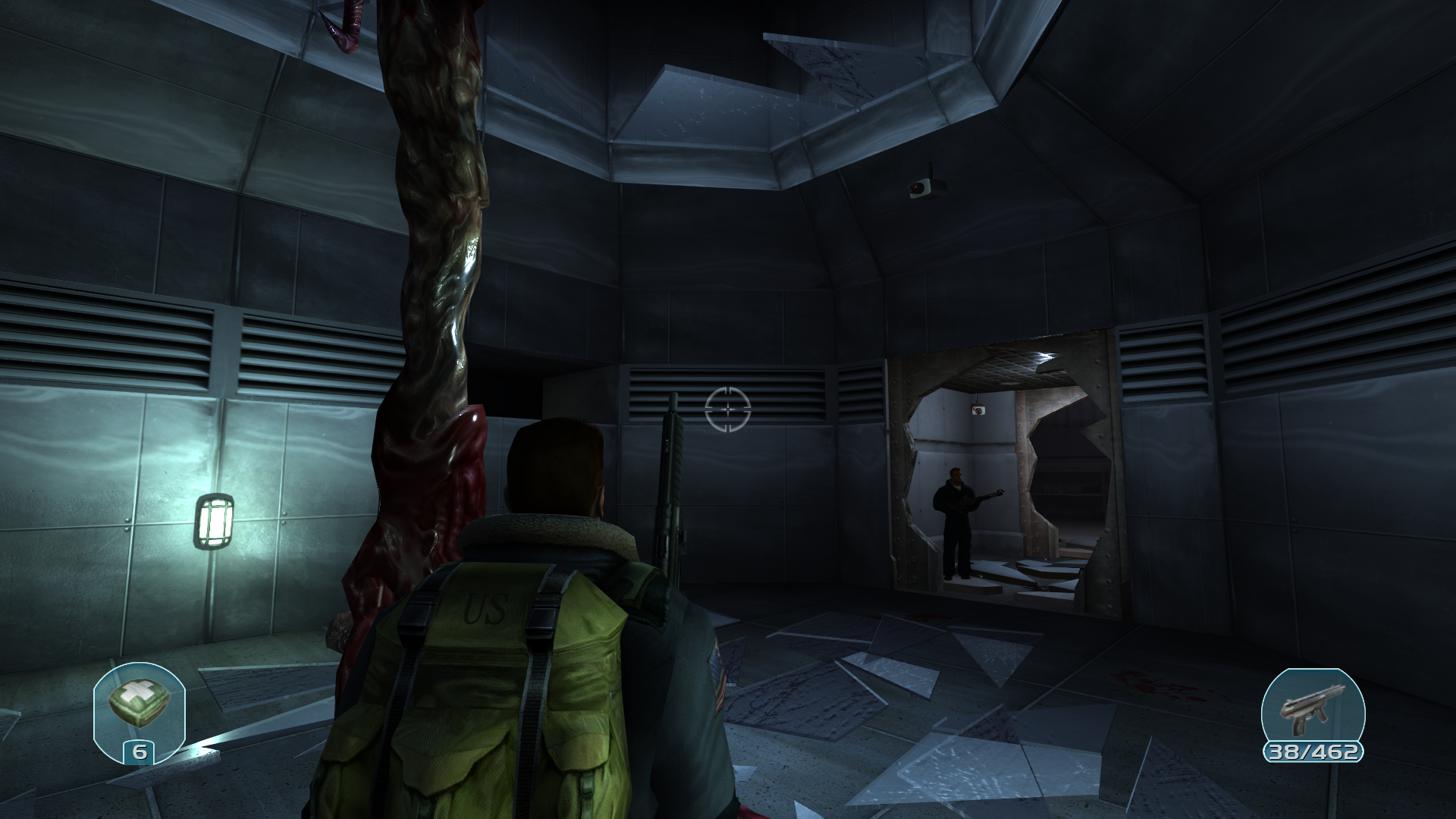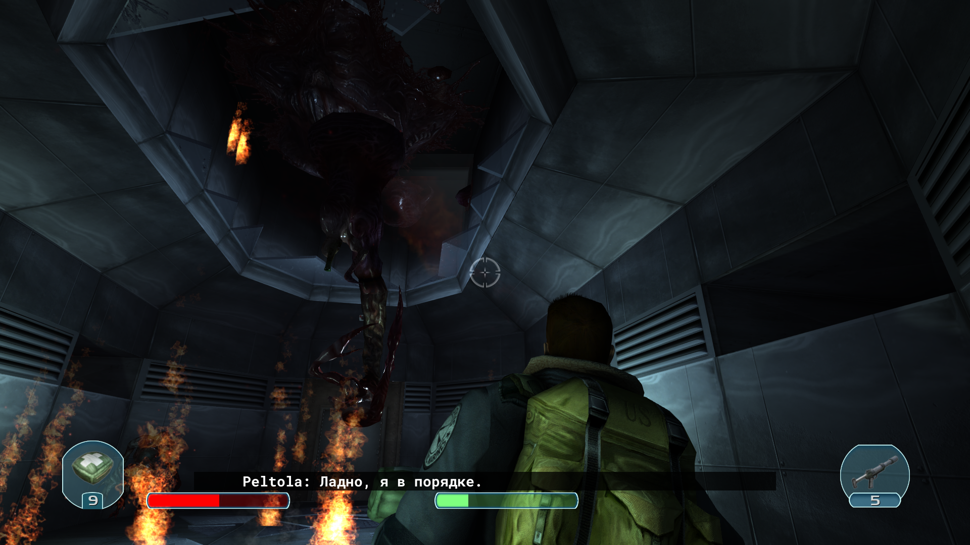 Приоритетом является не только выбраться живым, но и подорвать все эти места в труху. Чтоб во внешний мир не вырвались все эти эксперементы и внеземная жизнь. Ищу взрывчатку. Я дал дробовик напарнику и это оказалось удачное решение, вдвоем мы просто разьебалово устраиваем без шанса на реабилитацию, он еще точно в шбан хуярит получше меня.