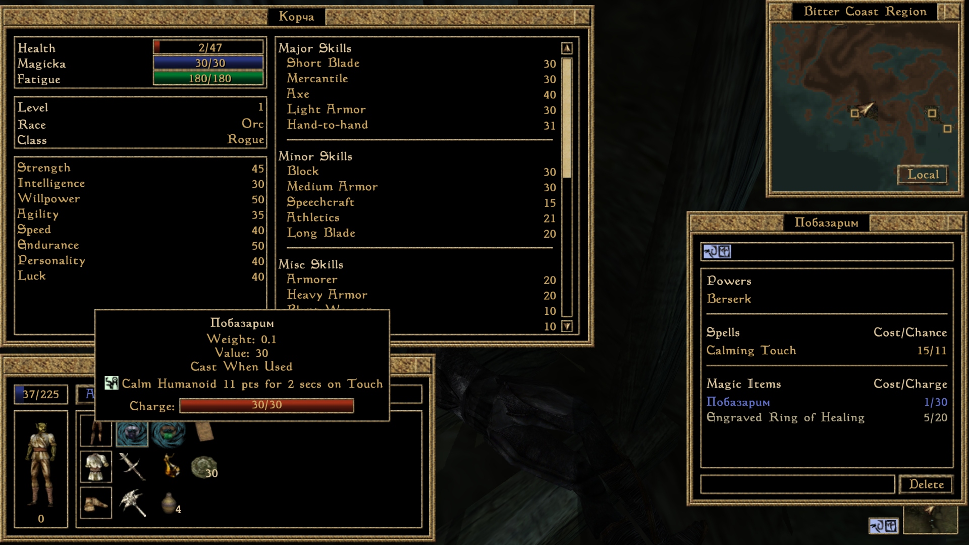 >>9965600 Даю. Мир Готики это кишка с небольшими камерами, в рамках которых ты можешь пиздить одних по сложности мобов и иметь ограниченный перечень предметов и навыков. Нельзя пиздить мобов в другой камере, пока не занюхаешь большую часть в предыдущей, потому что не хватает статов и ты сосешь. Большая часть мобов вблизи имеет принудительную анимацию удара, даже если ты все время уклоняешься или парируешь. Один из ударов проходит и ваншотит тебя. Поэтому приходится ловить их на длинных анимациях типа чарджа и набегания или кружения вокруг у людей. Короче абузить анимации как дебил. Тем временем в Морровинде можно разогнать статы кучей способов хоть на 1 лвле. И никто не мешает, а скорее поощряет отправиться в другой город, один из десятков, там нарыть че-нить в мусорке или ограбить кого-нибудь или выполнить квест типа принеси и купить себе норм вещи или чары. Очень свободная игра. При этом не нужно бегать по всей карте и собирать сраные корни ради статов, как в Гачике, чтобы только взять в руки нормальный меч. В Море если меч нашел, то берешь и пользуешься, как человек. Заклинания имба, какой и должна быть магия, а не дефолтный цветной пердеж, как в Гачике, где огненная стрела, огненный шар, гейзер, кал из жопы. Ассассин на видео противник из последнего ДЛЦ, очевидно один из сильнейших врагов, но с заниженным лвлом, так что победить его можно. Видно, что сложность игры выкручена на 100, то есть твой исходящий физ урон в 4 раза меньше, входящий в 6 раз выше. Даже так его можно просто утопить в луже, отпиздив кулаками. Потому что у него не будет стамины и он получит урон в ХП. Его также можно запугать, если использовать мусорную чарку на успокоение гуманоида, затем допиздеться. Его значение трусости вырастет и он будет все время убегать, пока ты пробиваешь ему очко. Долго из-за снижений физа, но отвечать он тебе не будет.