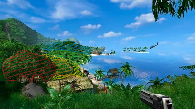 Киношники это знают и юзают дым-машину, чтобы засветить дым и очертить контуры и выделить силуэты объектов. Иначе у тебя будет как в первом фаркрае, где нихуя не видно и не понятно. Можно ещё блуром, но в играх он нихуя не работает, потому что точки фокуса нету.