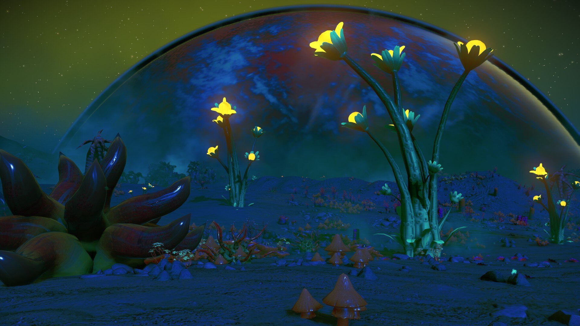 Печально конечно что генерация в NMS достаточно недоработання чтобы обеспечить действительно интересное исследование планет. Ну, и то что на всей планете только один биом тоже такое себе решение. Сделали бы в несколько раз больше частей животных и растений, концепт-артов тьма ведь.