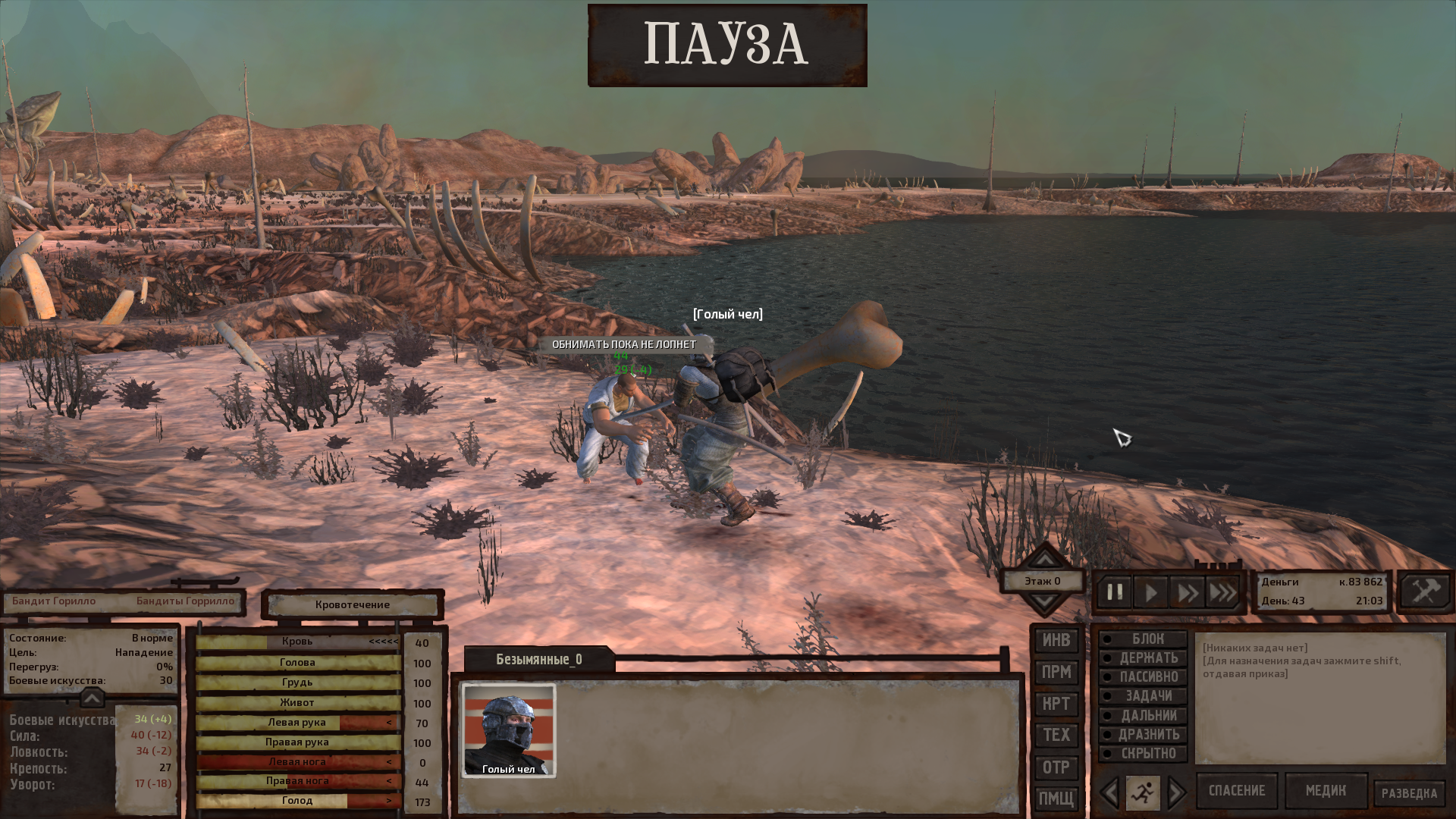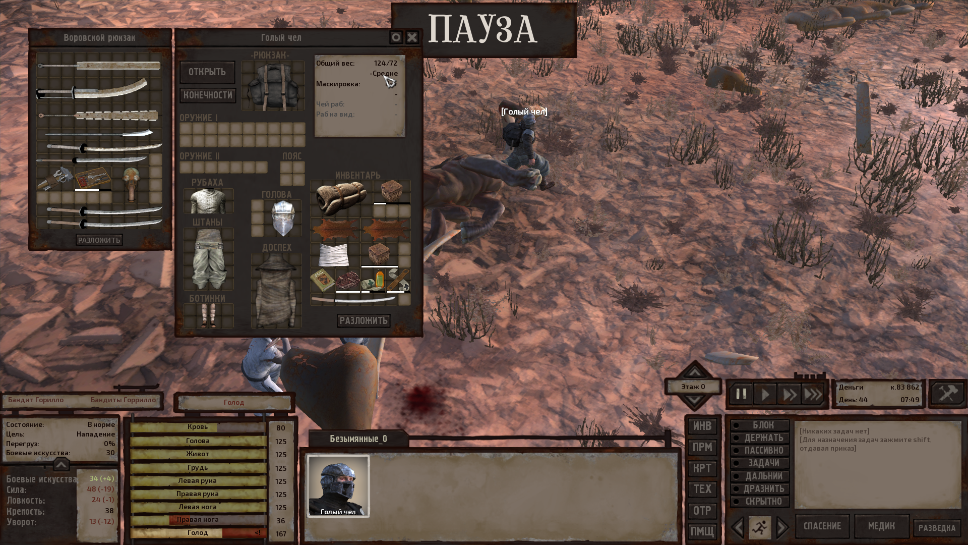 Как же хочется научиться играть в кенши. Каждую мою сессию мне дают пизды, я огребаю потом либо ползаю инвалидом без возможностей каких-либо. Либо ловлю софтлок, потому что меня группа тех паладинов за протезы ловит и по пустынному патрулю водят 40 дней и ночей пока я не сдохну от голода.