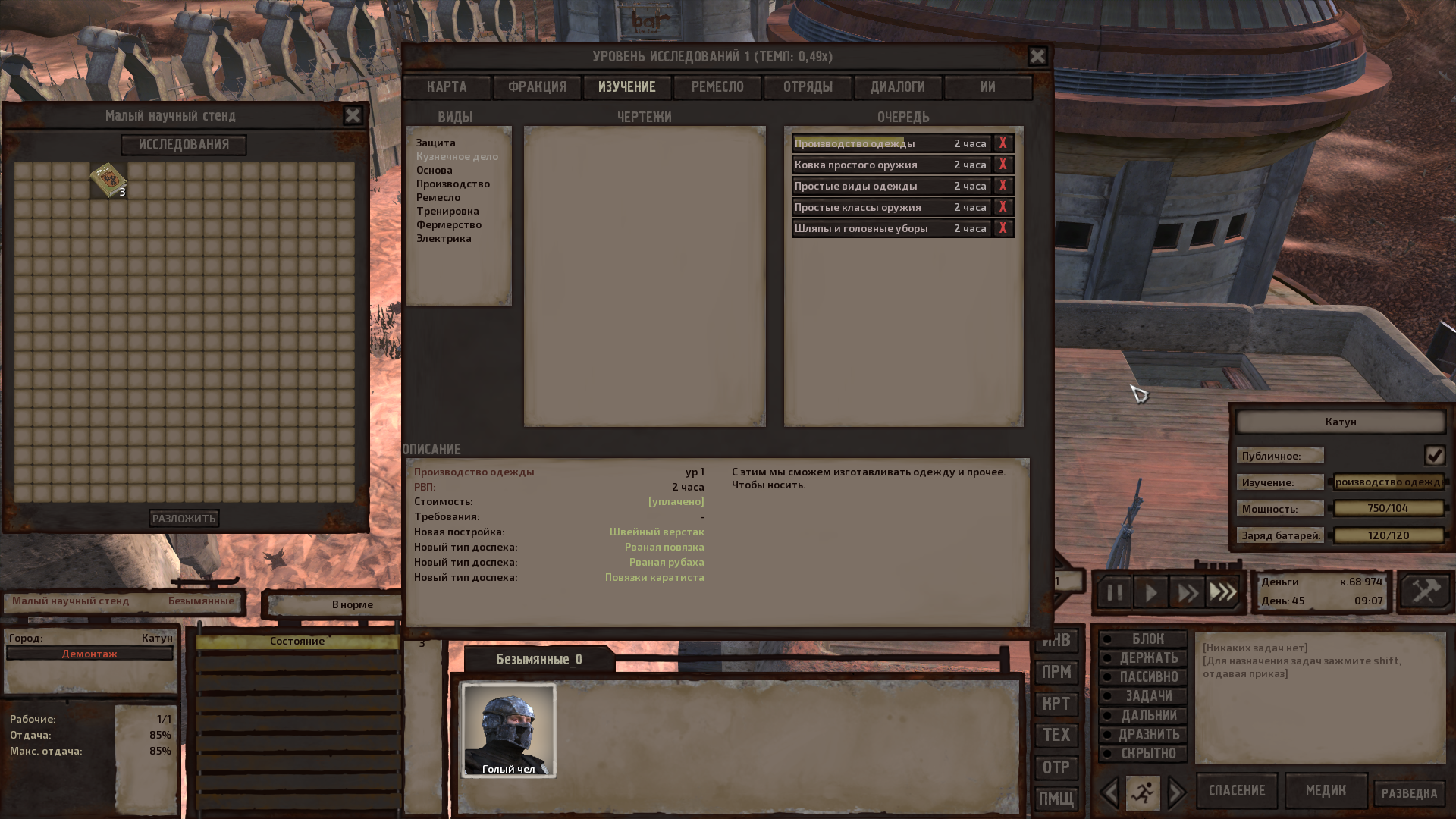 Я в Хабе сделал лабораторию и поставил станки в дома, а около Хаба в горах горнодобывающий комбинат, руда, камень, оборудование в моих зданиях, которое не влезло в город и агропром с запасами. Периодически мы ходим в рейды за нищтяками и боссами. Почти всю карту кроме самой трудной пепельной зоны я открыл. Остался последний большой рейд, я собираюсь в него уже год ))