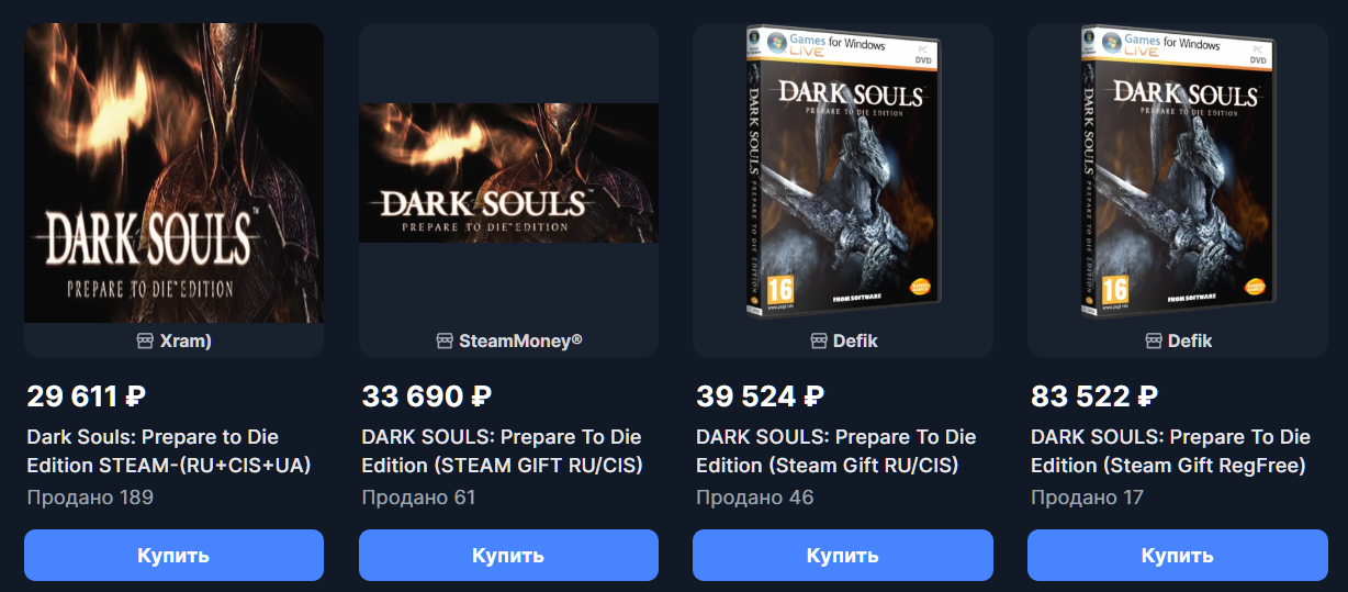 >>9896330 Если ты эти цены на плати увидел, то это неочем. Там в 90% цены всегда выше чем на забугорных сайтах, этот сайт просто говно в плане такого рода игр, у этих мудаков-продавцов никто их гифты не покупает уже сколько лет. Inventory.gift, steamtrades.com – некие стандарты, там всегда видна "реальная" цена за такие игры. Я бы посмотрел сейчас, сколько ключей стоит этот ДС на этом сайте, но мне лень включать некое программное обеспечение.