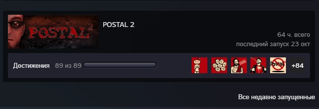>>9895826 (OP) Я открыл все ачивки в Постале. Ура! На это ушло два месяца примерно. Следующей игрой для открытия ачивок будет замечательная Даркнес 2. Играл еще на релизе. Отличный повод обмазаться ей еще разок спустя года. Кстати, удивился, что ее продают за 200 тенге. Я думал таких игр вообще нет в стиме. Думаю, сегодня вечером буду запускать.