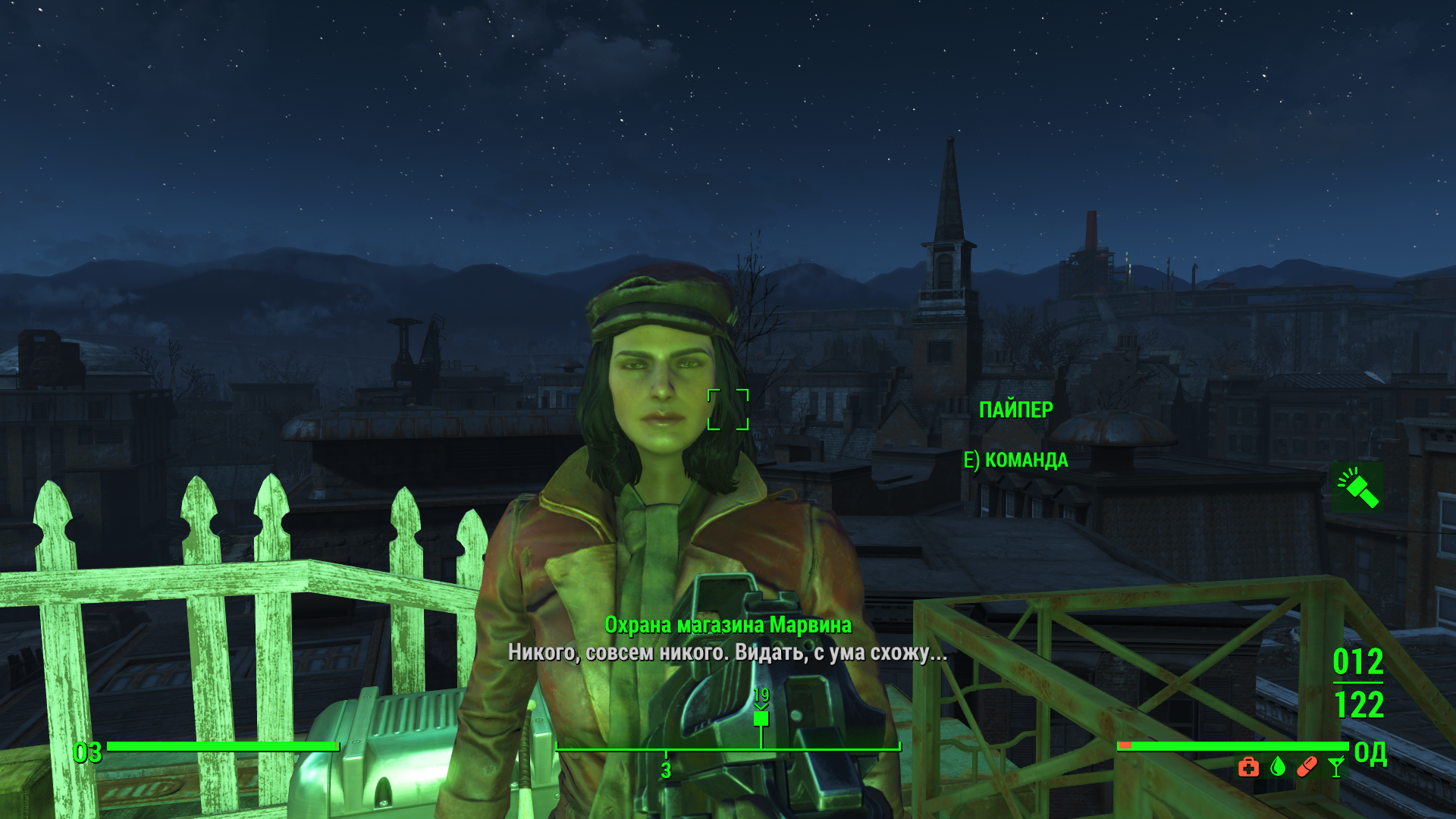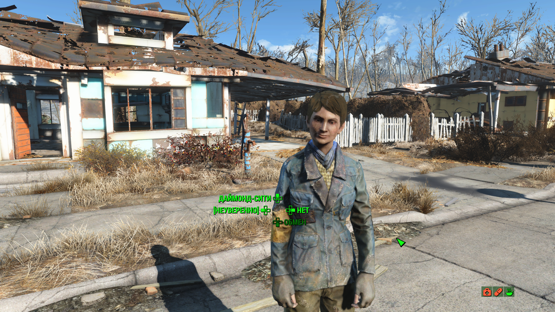 Короче беру всю залупу с собой, иду в Даймонд Сити, продаю хабар, чищусь от наркоты и иду спасать Валентайна. Моего любимого перса. Ну Пайпер тоже заебись.