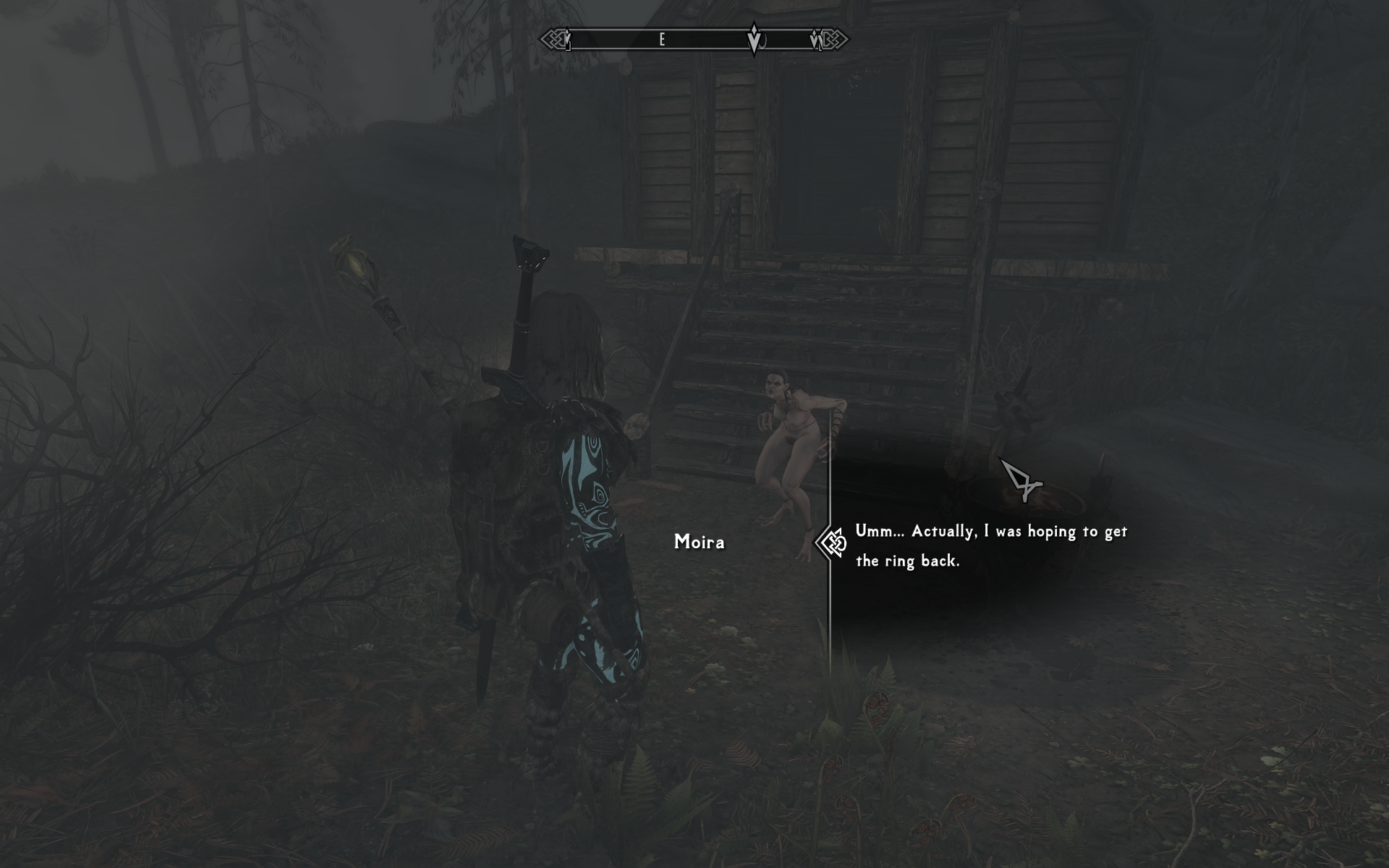 >>9904767 На видрил 1 квестодатель говорит про то что я во время пьянки выпросила у нее обручальное кольцо, сославшись на некий любовный интерес, попутно обернув все это в прекрасную романтическую историю, подкупившую квестгивера это самое колечко мне отдать. Ну, собственно, этой прекрасной возлюбленной оказалась пикрил. Ну и я как бы не против с ней обручиться и жить вместе, все же она довольно милая, но игра почему-то не дает такой возможности, хотя вот вариантов договориться с той дамой из Вайтрана завезли штук 5.