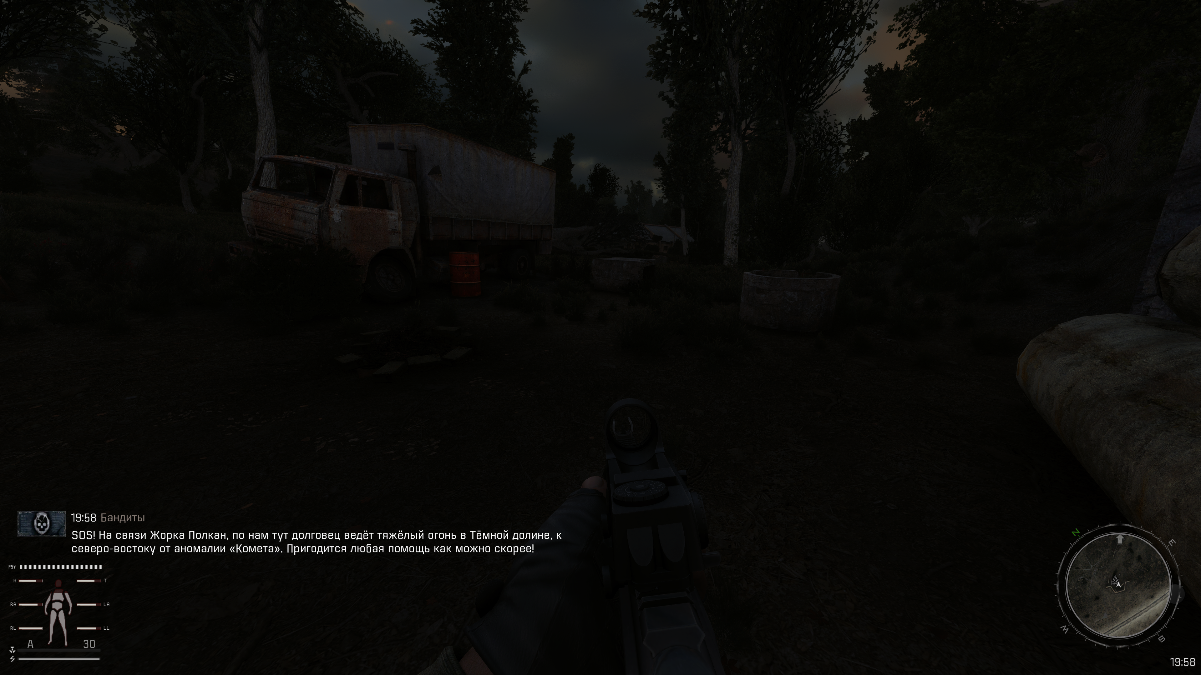 >>9905833 А, лол, перепутал Долину и Лощину. В Лощине сначала пришлось заниматься натуральной акробатикой, чтобы достать тайник на дереве, а затем меня отпиздили кабаны. После перезагрузки не мог запрыгнуть на ветку минут 10 или 15, лол. Дальше пиздец начался. Убил кабанов, прошёл в лес. Справа кровосос разминает очко зомби, слева наёмники, спереди стая собак и снова стадо кабанов. Всё это приправлено лесом, полным аномалий. Чуть не поседел нахуй, пока бегал туда и обратно, у меня ведь стартовая снаряга.