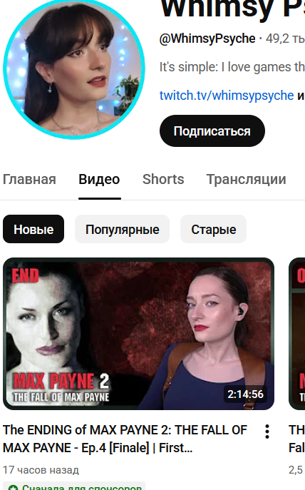 >>10003293 Ты знаешь я чисто случайно ткнул на запись стрима по Max Payne 1 и узнал что она франко-канадка, 93 года рождения, работала раньше в видеопрокате.
